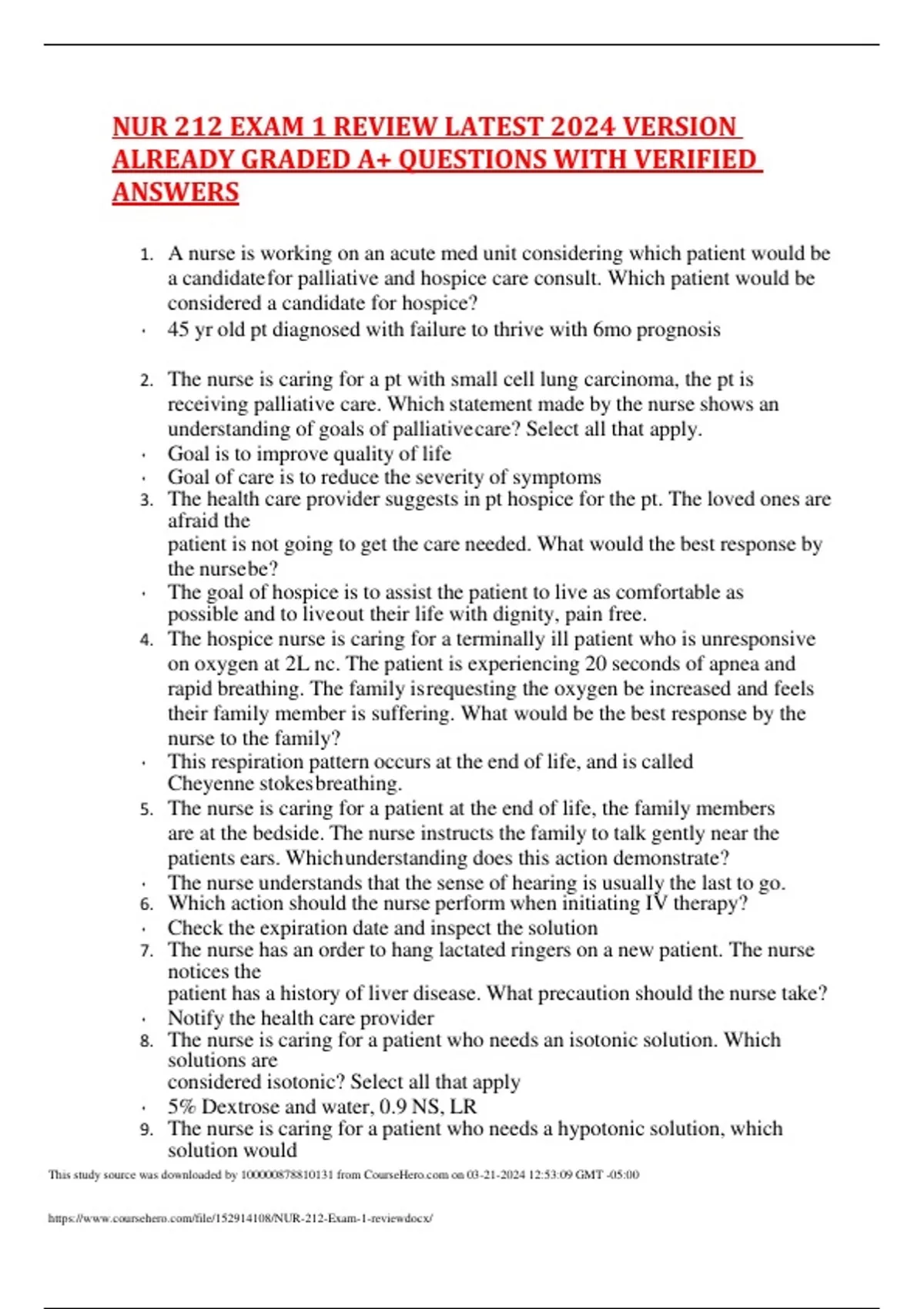 nur 212 exam 1 review latest 2024 version already