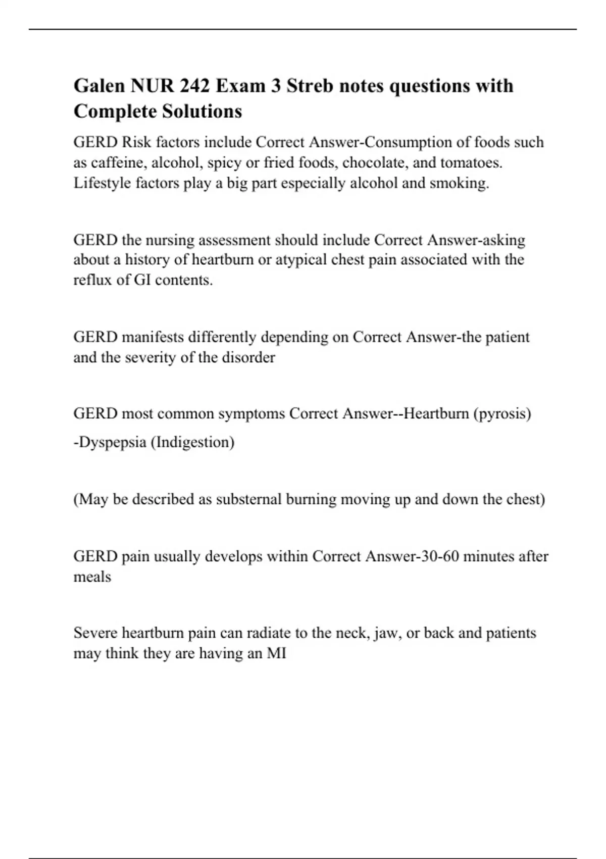 Galen NUR 242 Exam 3 Streb notes questions with Complete Solutions.
