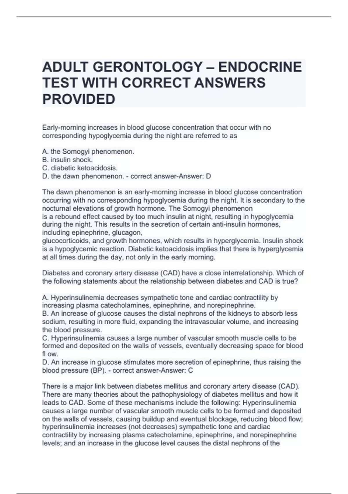 ADULT GERONTOLOGY – ENDOCRINE TEST WITH CORRECT ANSWERS PROVIDED