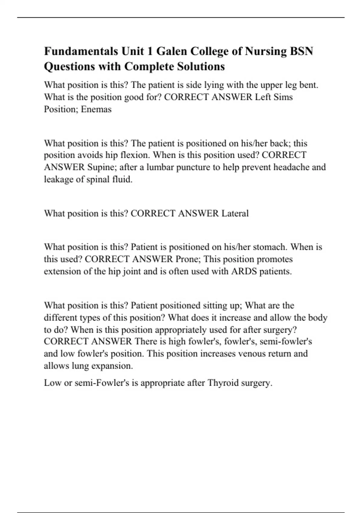Fundamentals Unit 1 Galen College of Nursing BSN Questions with Complete Solutions.