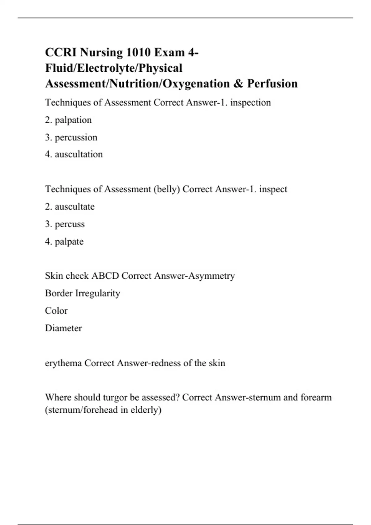 Techniques of Assessment (belly) Correct Answer-1. inspect