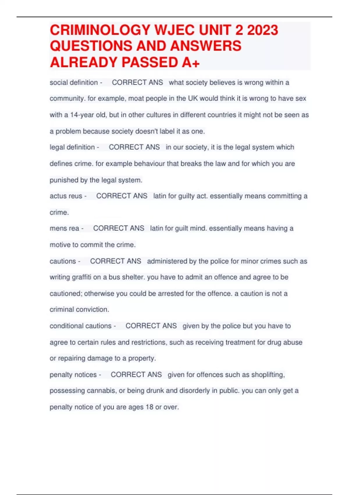 CRIMINOLOGY WJEC UNIT 2 2023 QUESTIONS AND ANSWERS ALREADY PASSED A+