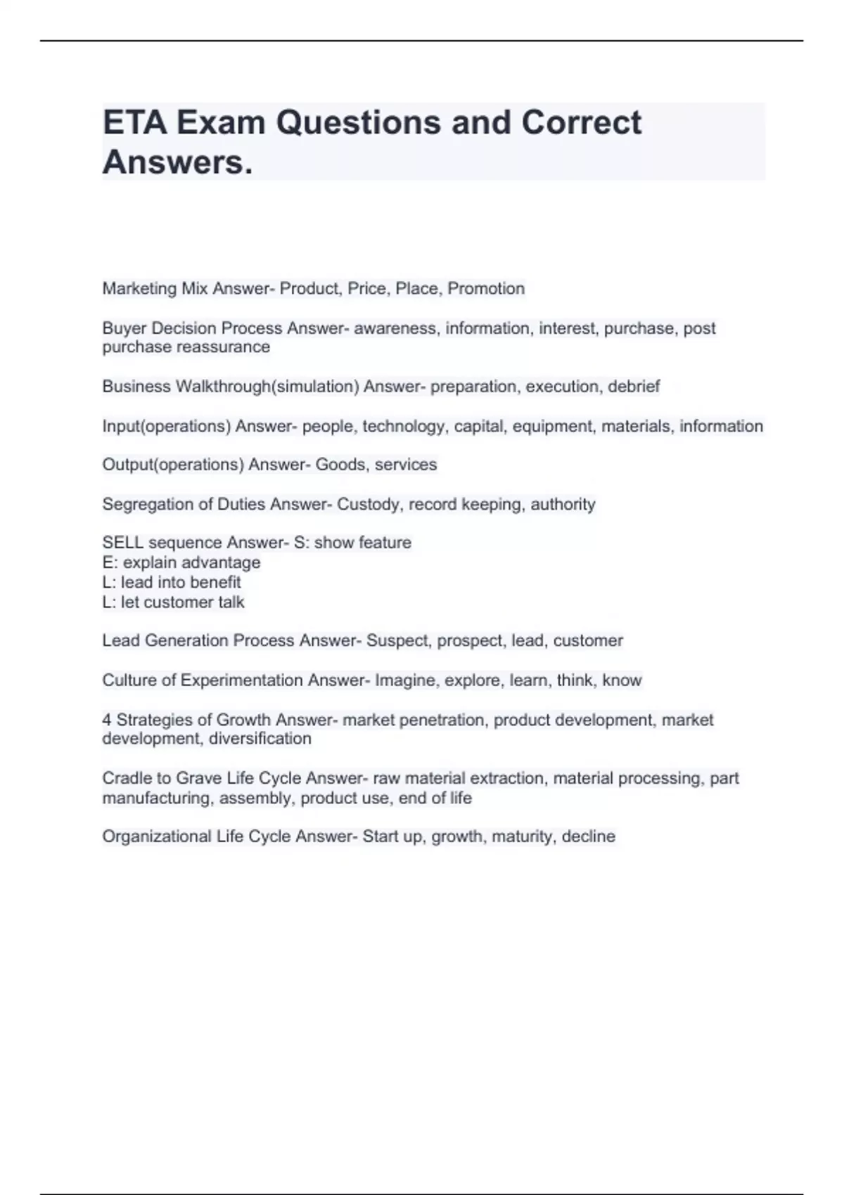 ETA EXAM BUNDLE WITH CORRECT QUESTIONS AND ANSWERS