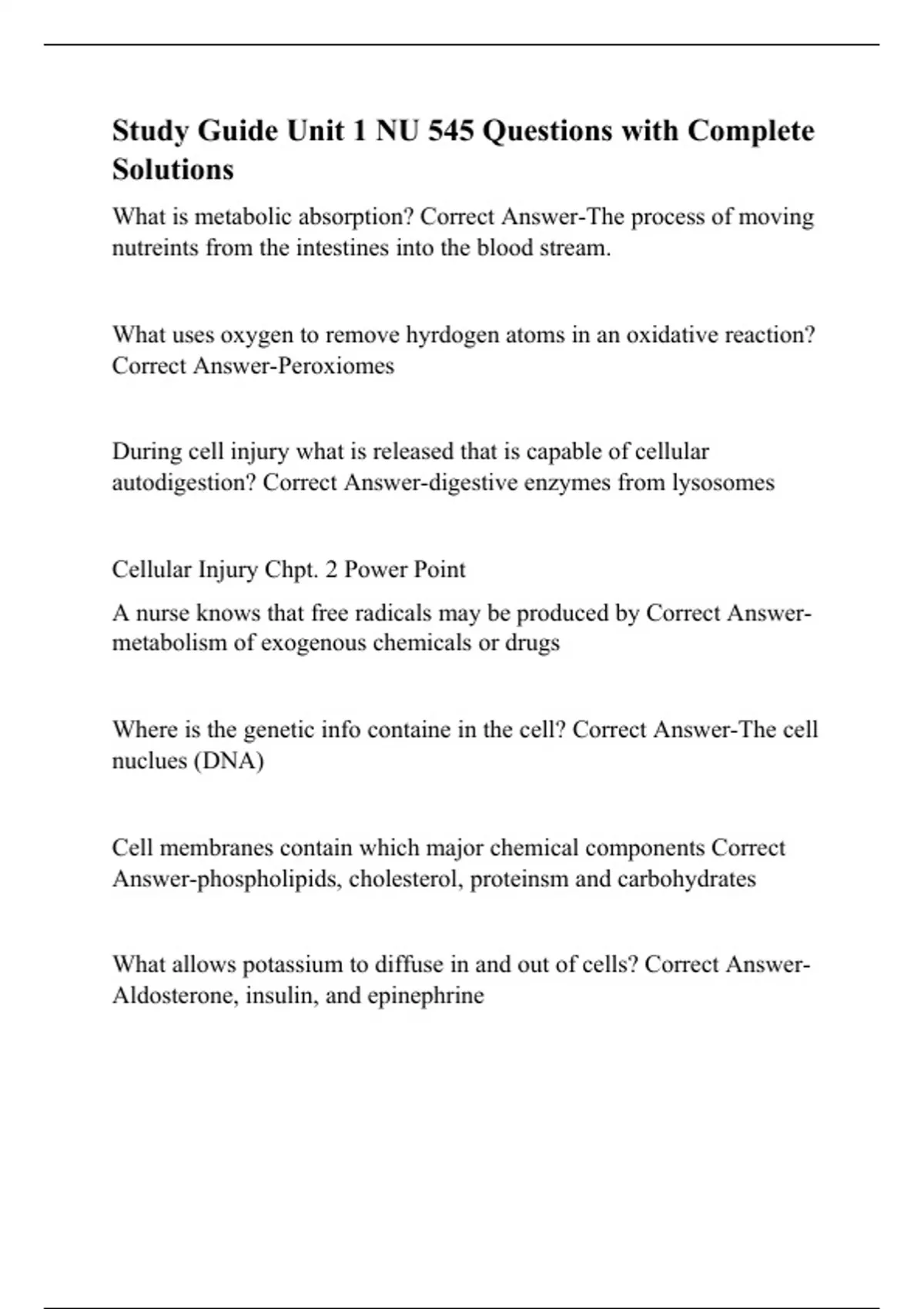 Study Guide Unit 1 NU 545 Questions with Complete Solutions