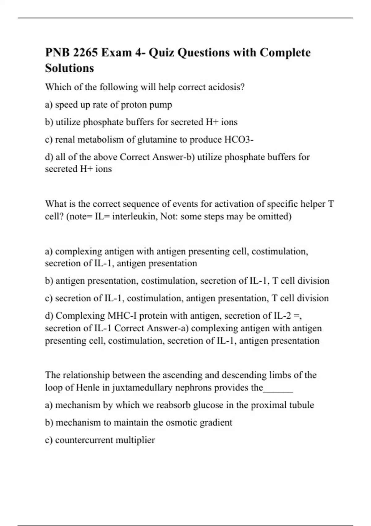 PNB 2265 Exam 4- Quiz Questions with Complete Solutions