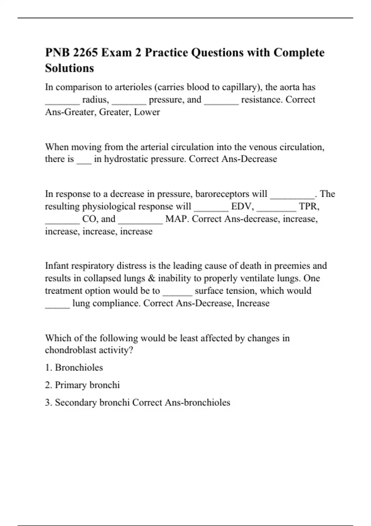 PNB 2265 Exam 2 Practice Questions with Complete Solutions.