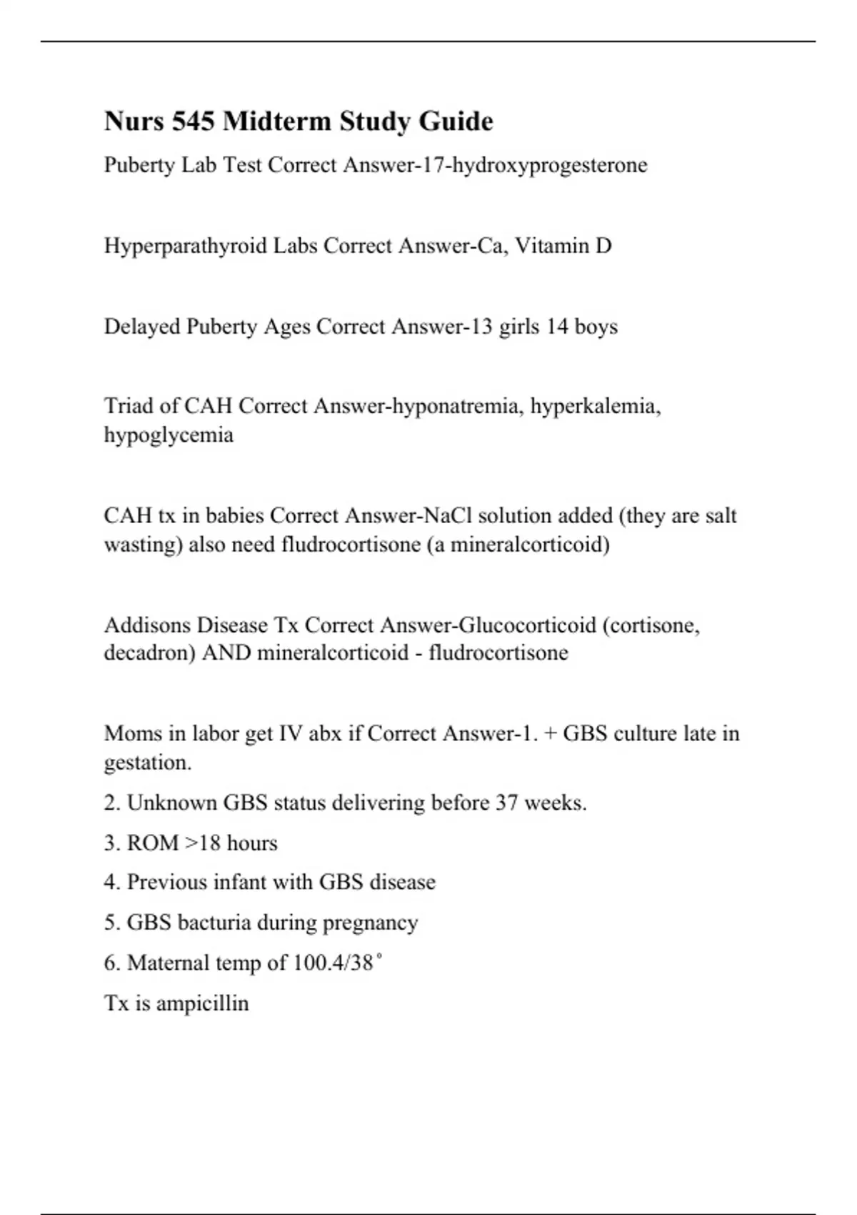 nurs 545 midterm study guide