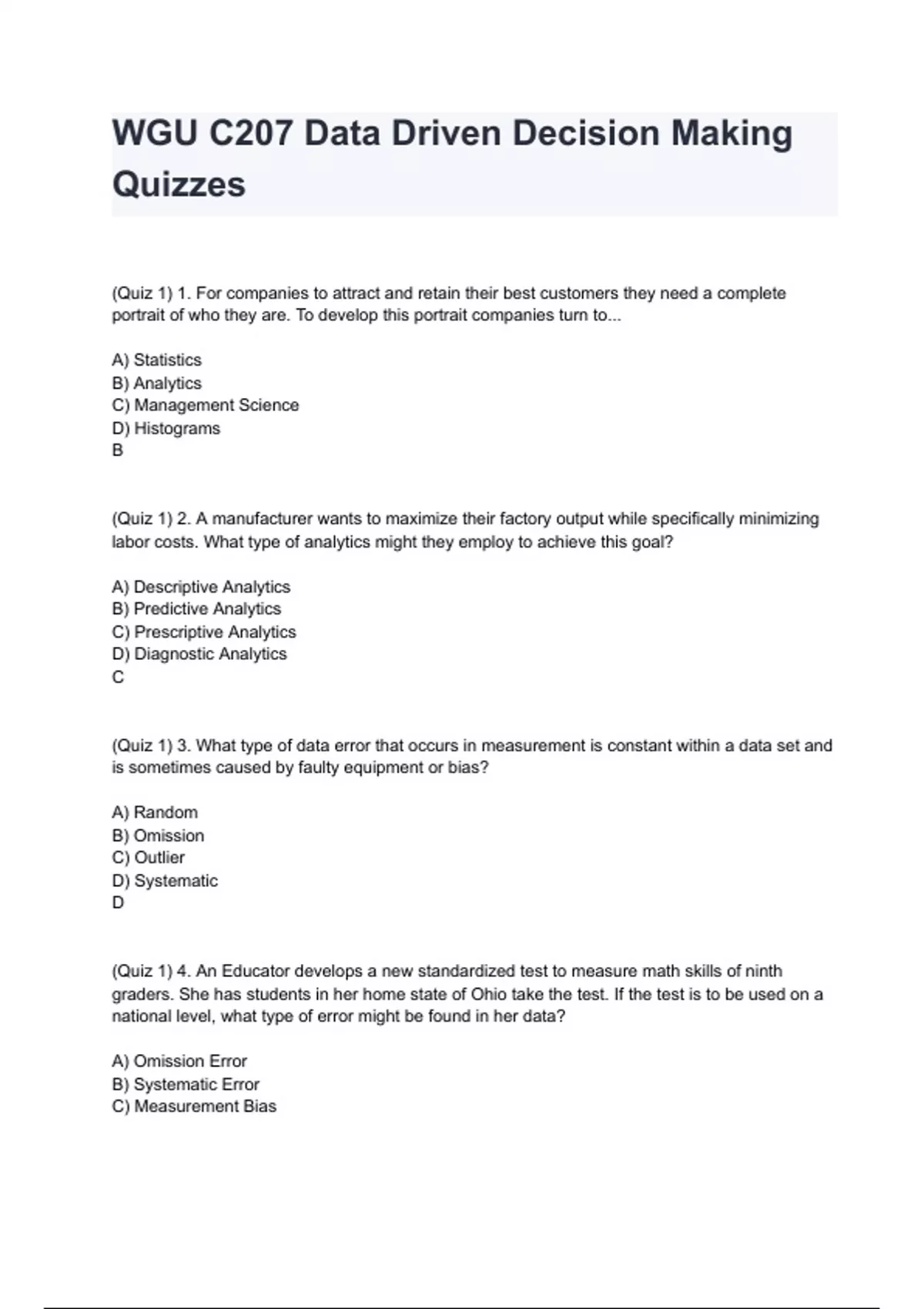 WGU C207 Data Driven Decision Making Quizzes Exam Questions And Answers