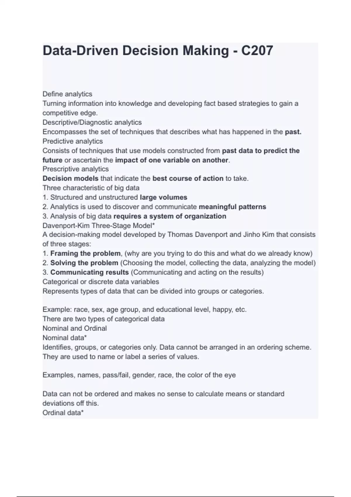 Data-Driven Decision Making - C207 Questions and Answers Latest (2023 / 2024) (Verified Answers)