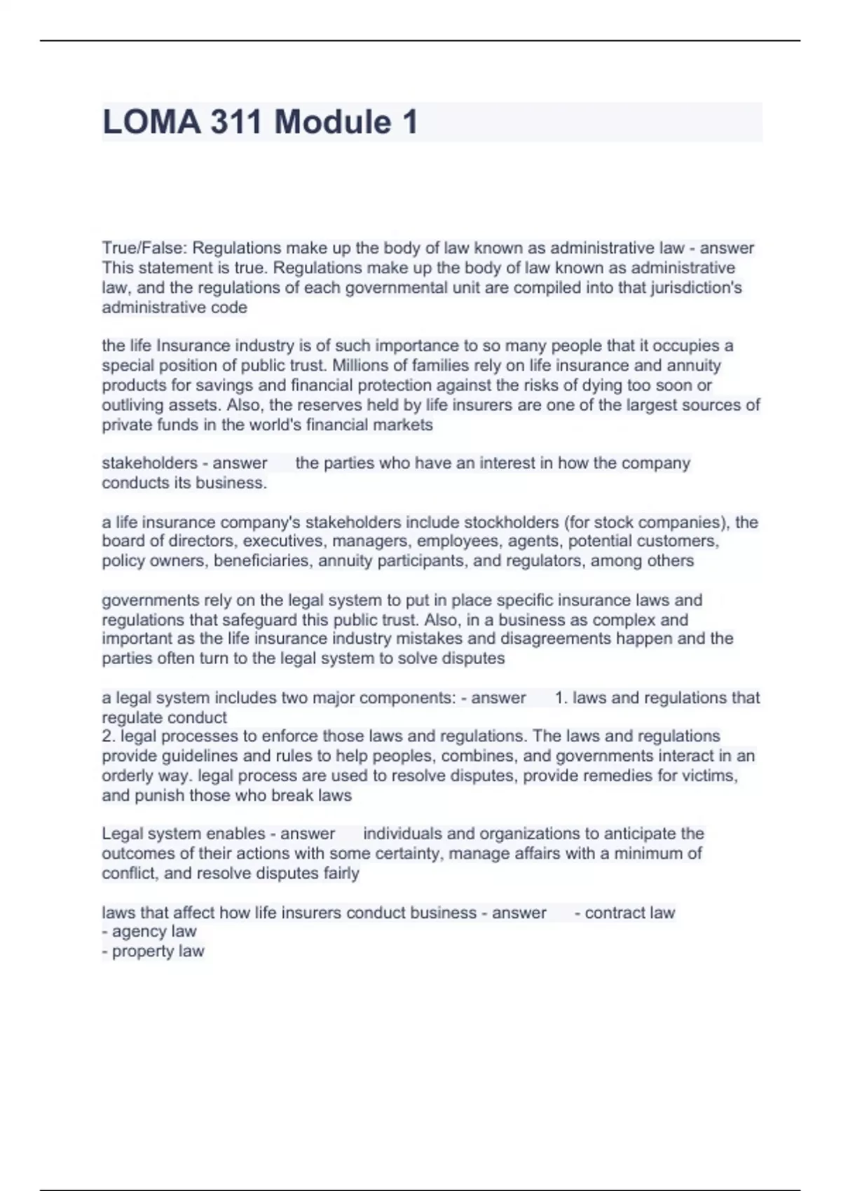 LOMA 311 Module 1 Questions and Answers Fully solved