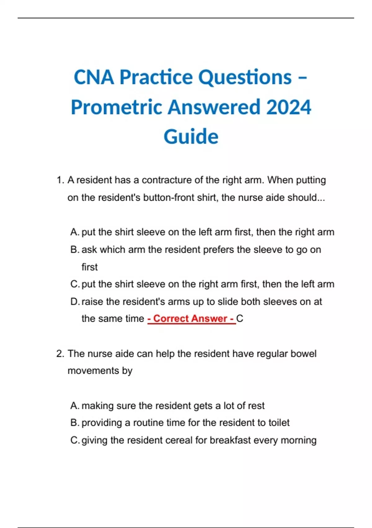 CNA Practice Questions – Prometric Answered 2024 Guide CNA Practice Questions – Prometric Answered 2024 Guide CNA Practice Questions – Prometric Answered 2024 Guide