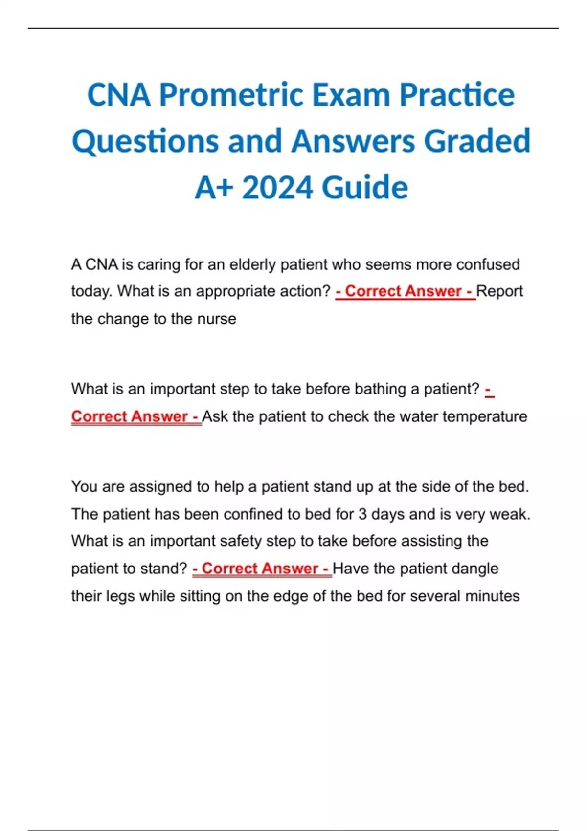 CNA Prometric Exam Practice Questions and Answers Graded A+ 2024 Guide CNA Prometric Exam Practice Questions and Answers Graded A+ 2024 Guide CNA Prometric Exam Practice Questions and Answers Graded A+ 2024 Guide