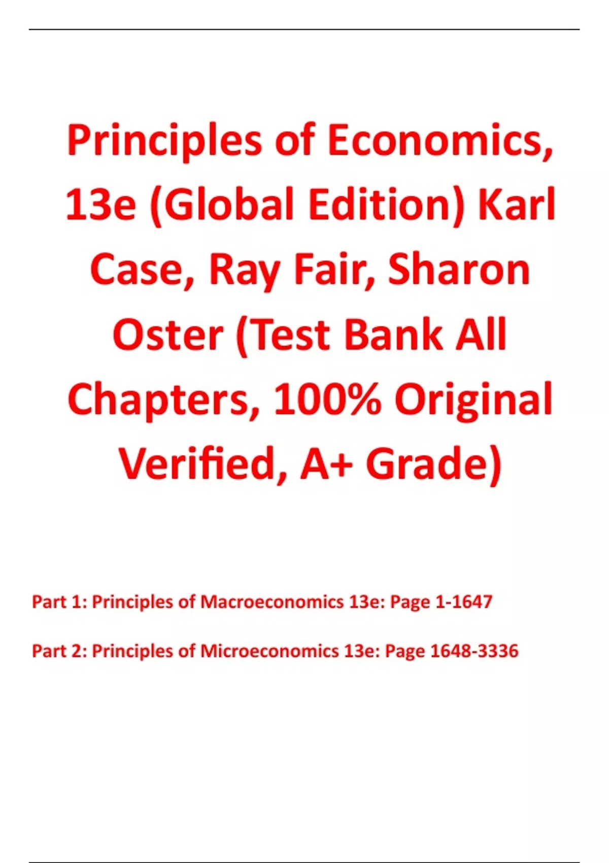 Test Bank for Principles of Economics 13th Edition (Global Edition) By Karl Case, Ray Fair, Sharon Oster (All Chapters, 100% Original Verified, A+ Grade)