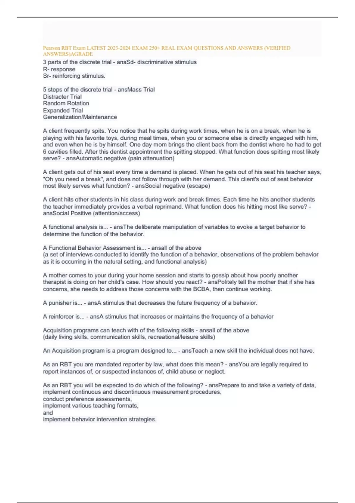 Pearson RBT Exam LATEST EXAM 250+ REAL EXAM QUESTIONS AND ANSWERS (VERIFIED ANSWERS)AGRADE