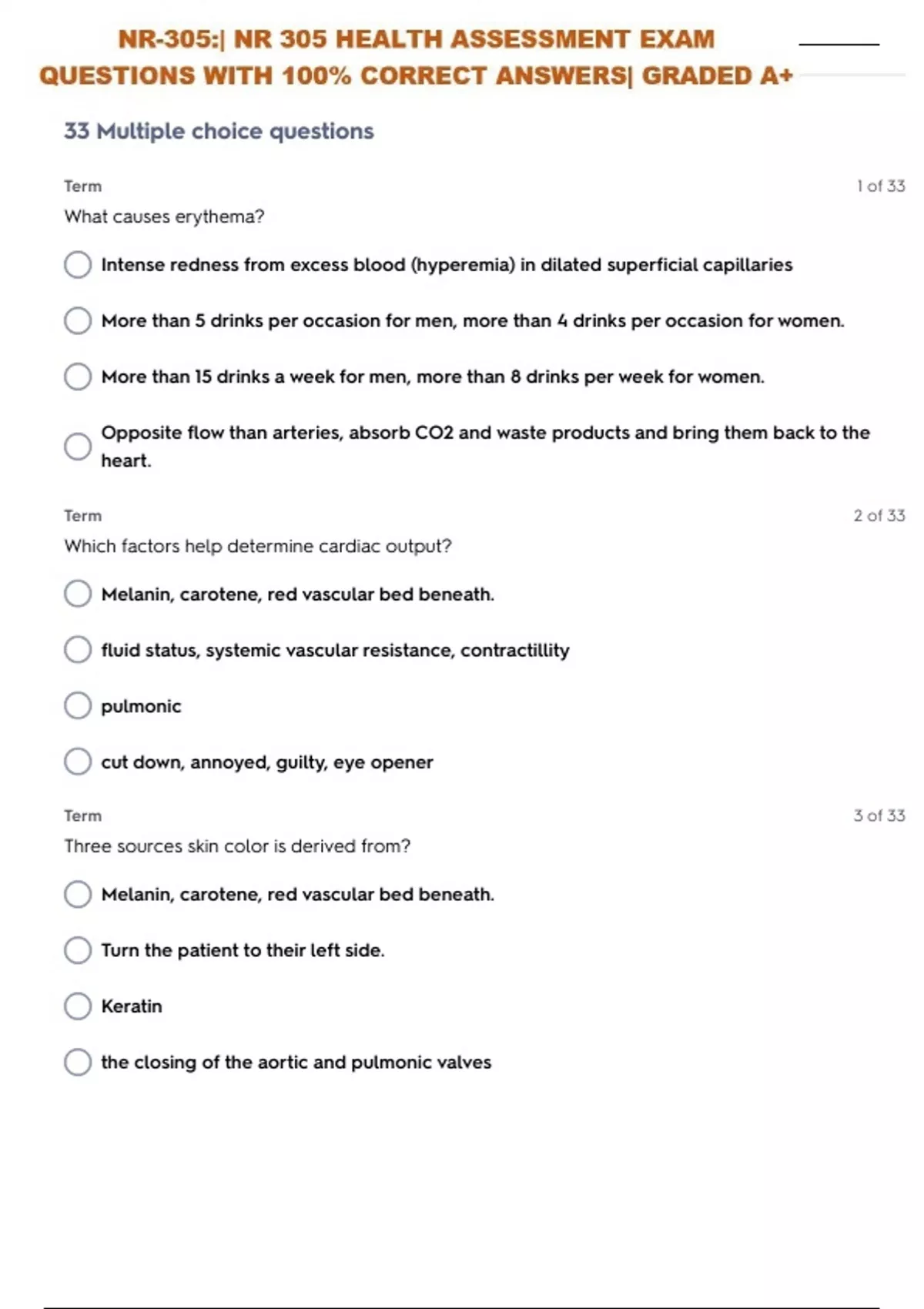 NR-305:| NR 305 HEALTH ASSESSMENT EXAM QUESTIONS WITH 100% CORRECT ANSWERS| GRADED A+