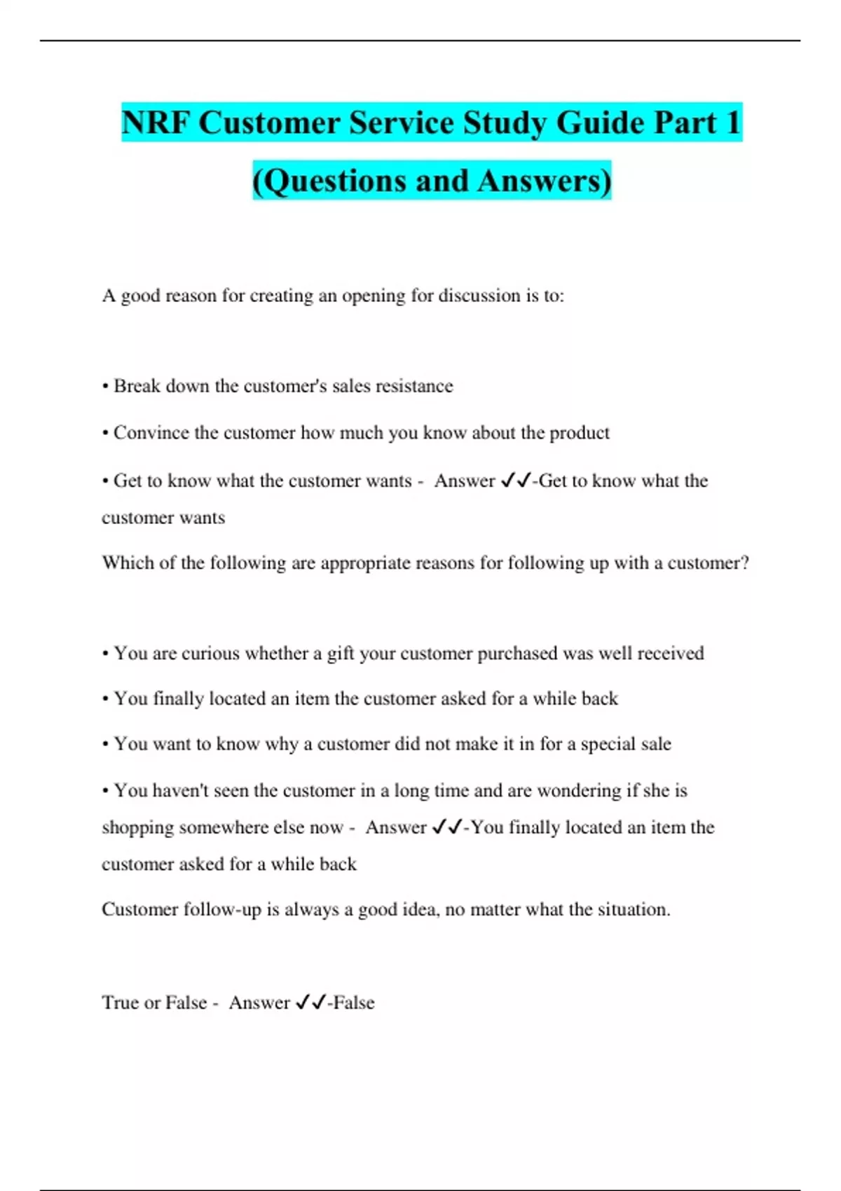 NRF Customer Service Study Guide Part 1 (Questions and Answers)