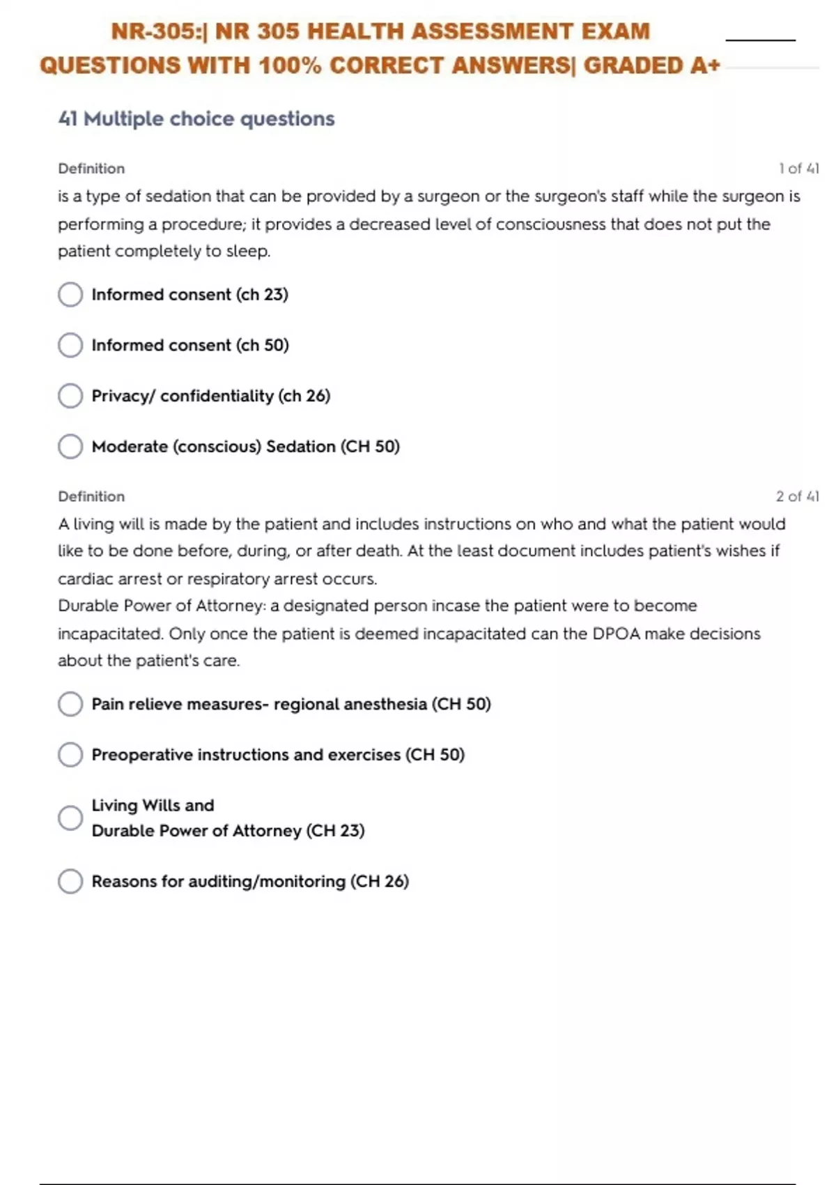 ALL IN ONE PACKAGE DEAL FOR NR-305:| NR 305 HEALTH ASSESSMENT WITH COMPLETE SOLUTIONS