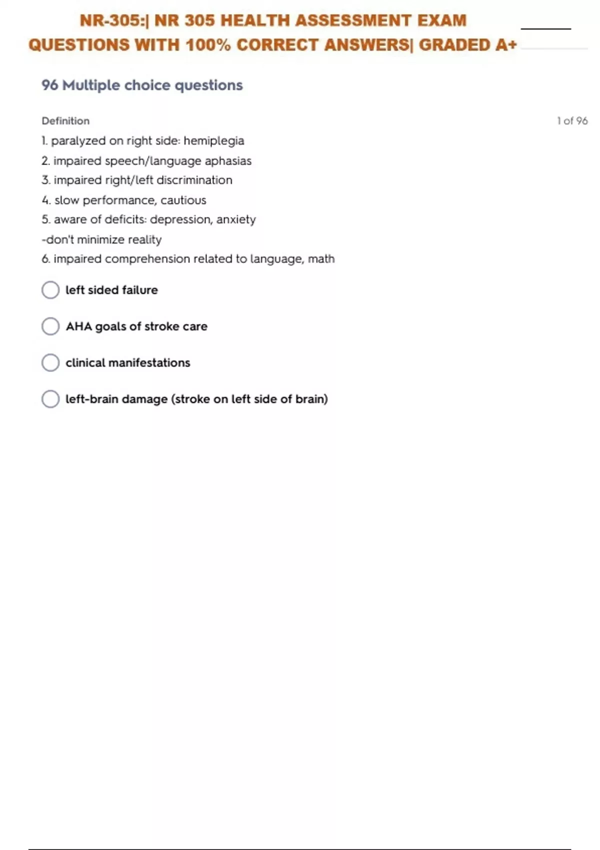 NR-305:| NR 305 HEALTH ASSESSMENT EXAM QUESTIONS WITH 100% CORRECT ANSWERS| GRADED A+