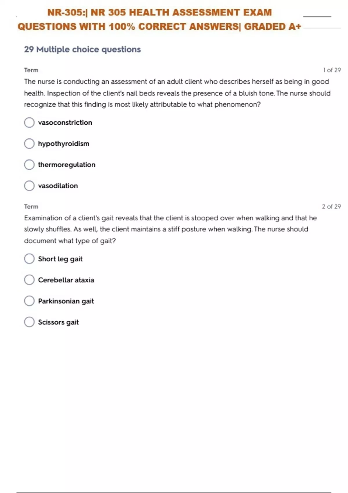 NR-305:| NR 305 HEALTH ASSESSMENT EXAM 5 PRACTICE QUESTIONS WITH 100% CORRECT ANSWERS| GRADED A+
