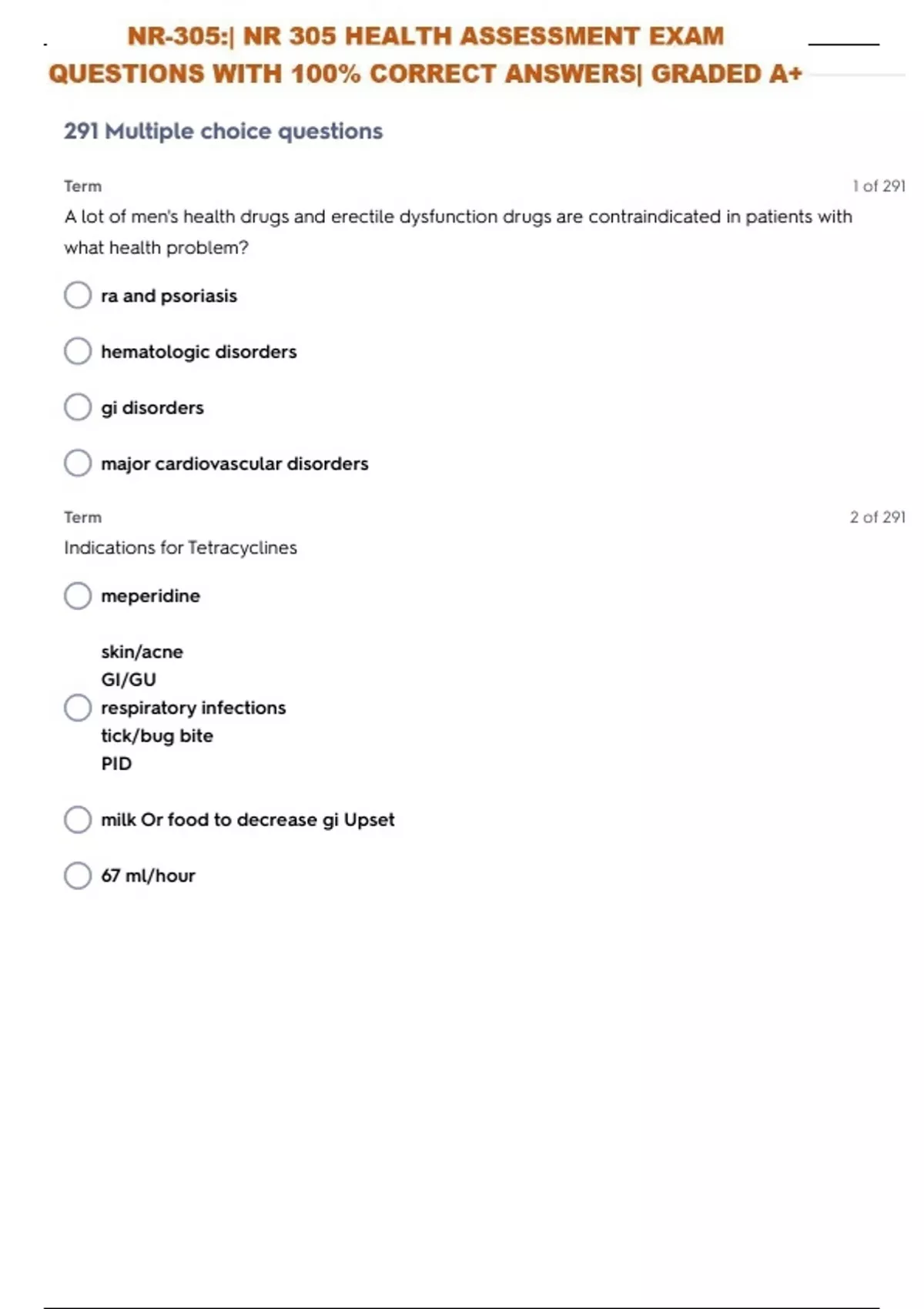 NR-305:| NR 305 HEALTH ASSESSMENT FINAL EXAM QUESTIONS WITH 100% CORRECT ANSWERS| GRADED A+