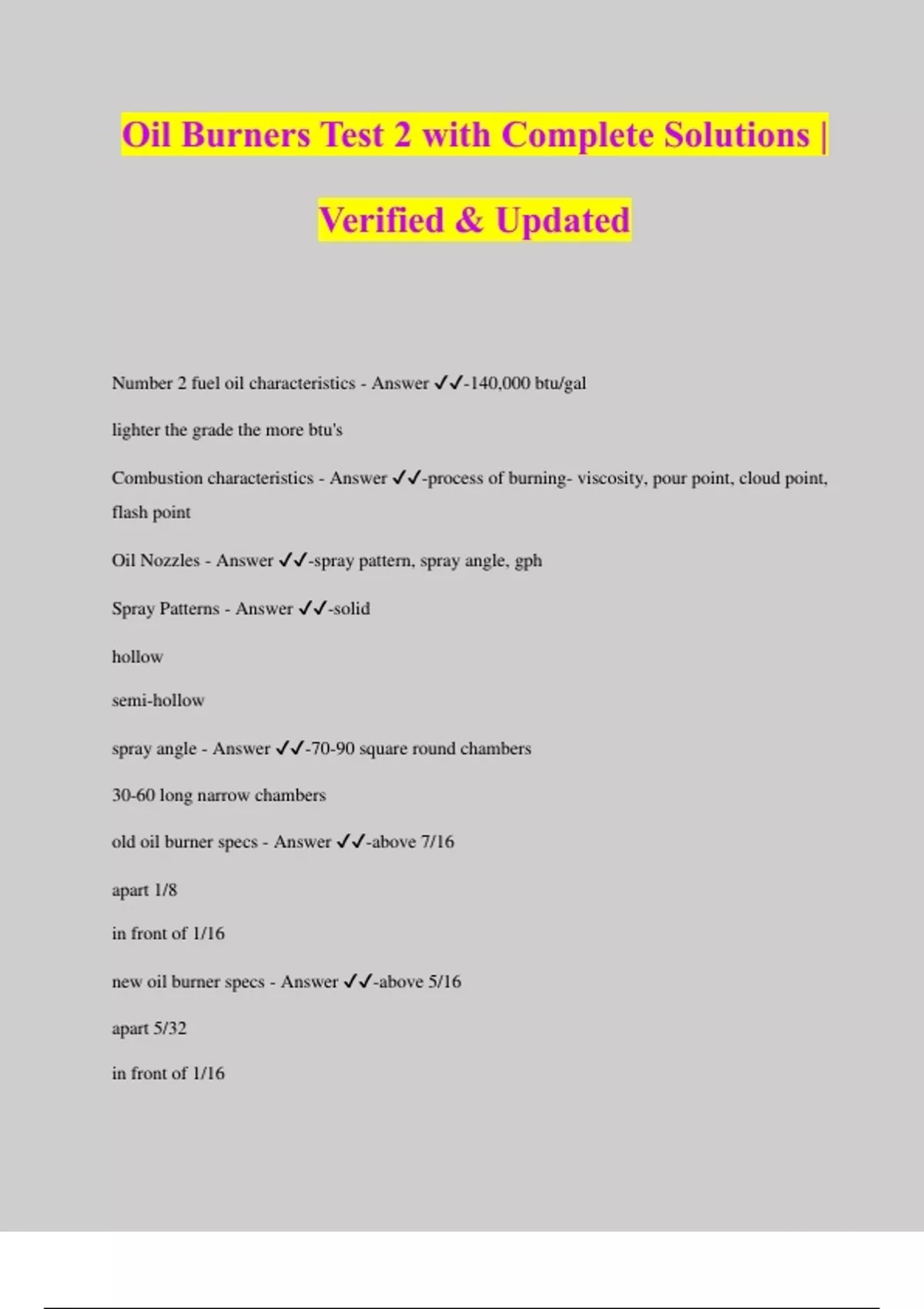 Oil Burners Test 2 with Complete Solutions | Verified & Updated
