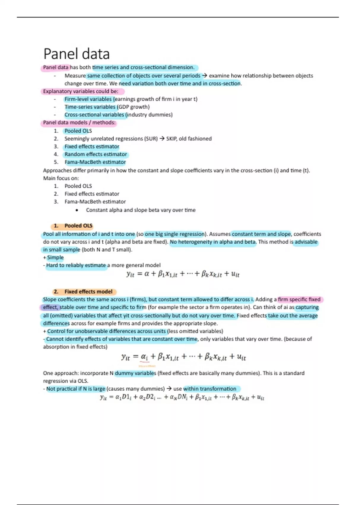 Pool all informa on of i and t into one (so one big single regression). Assumes constant term and slope, coefficients