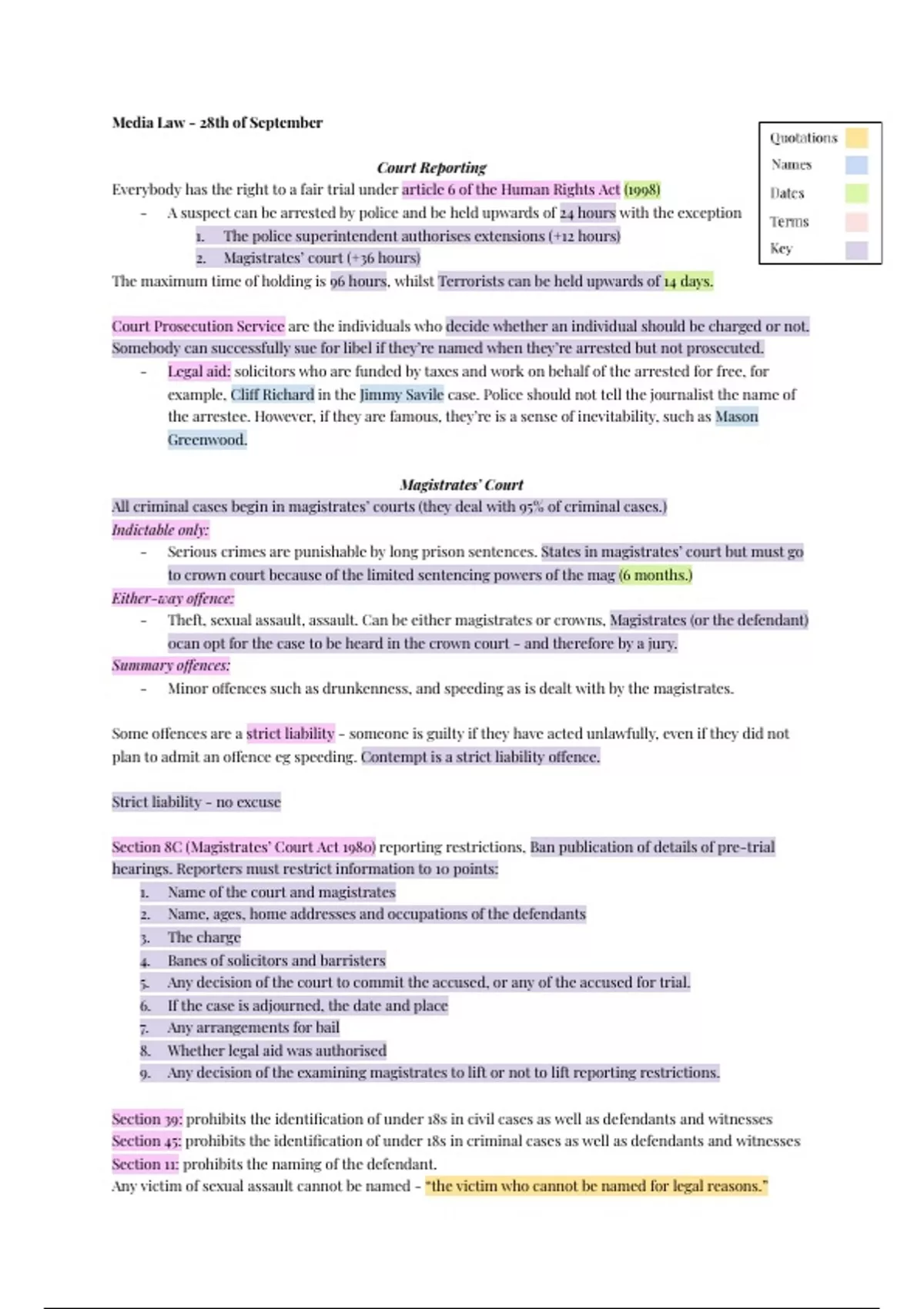Media Law - 28th of September