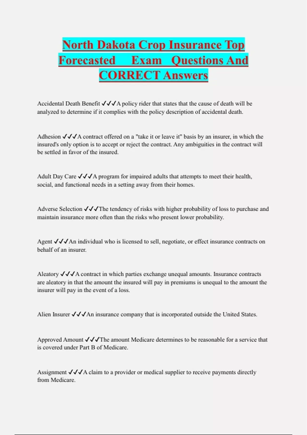 North Dakota Crop Insurance Top Forecasted Exam Questions And CORRECT Answers