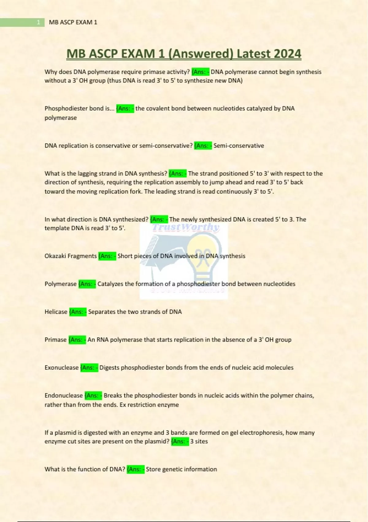 MB ASCP EXAM 1 (Answered) Latest 2024,MB ASCP EXAM 1 (Answered) Latest 2024,MB ASCP EXAM 1 (Answered) Latest 2024,MB ASCP EXAM 1 (Answered) Latest 2024