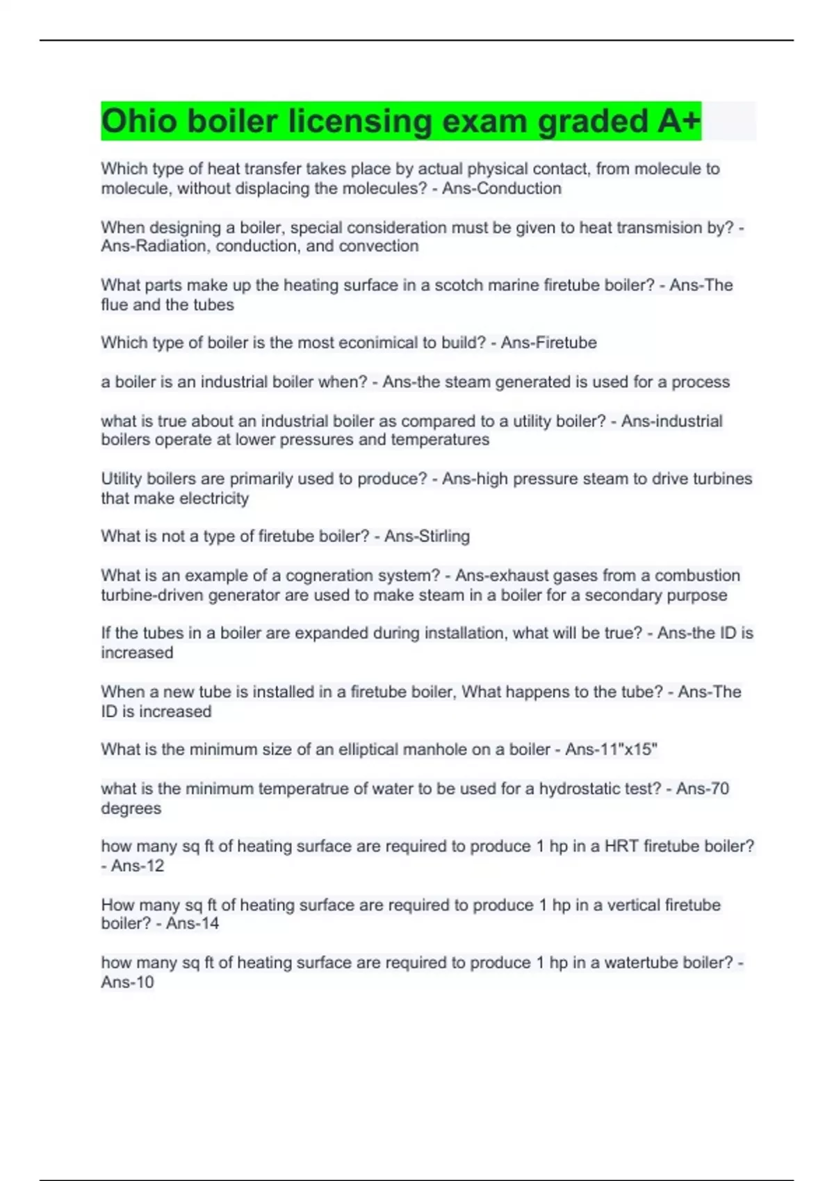 Ohio boiler licensing exam graded A+