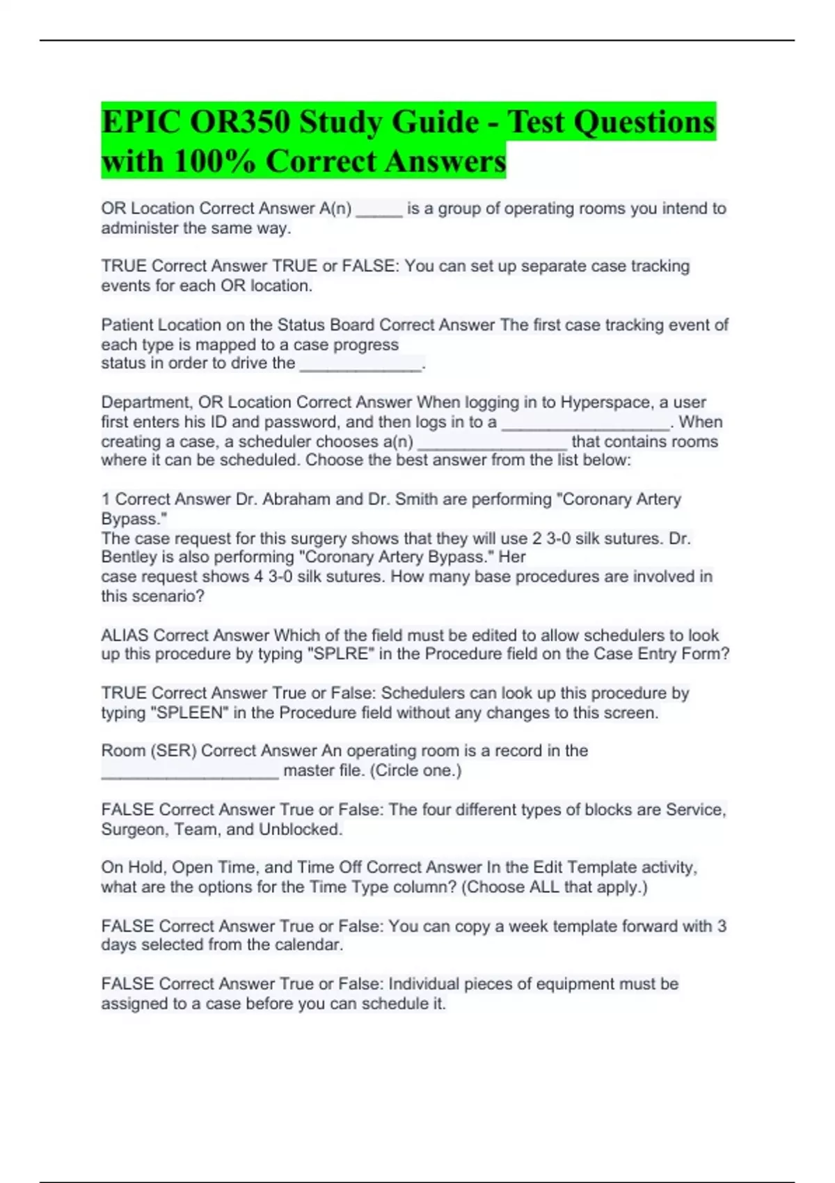EPIC OR350 Study Guide - Test Questions with 100% Correct Answers