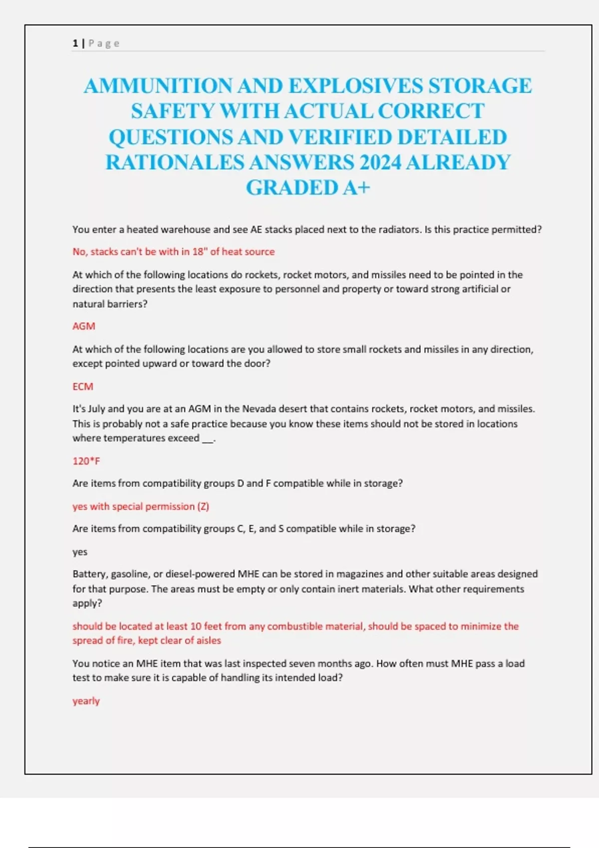 AMMUNITION AND EXPLOSIVES STORAGE SAFETYWITH ACTUAL CORRECT QUESTIONS AND VERIFIED DETAILED RATIONALES ANSWERS 2024 ALREADY GRADED A+