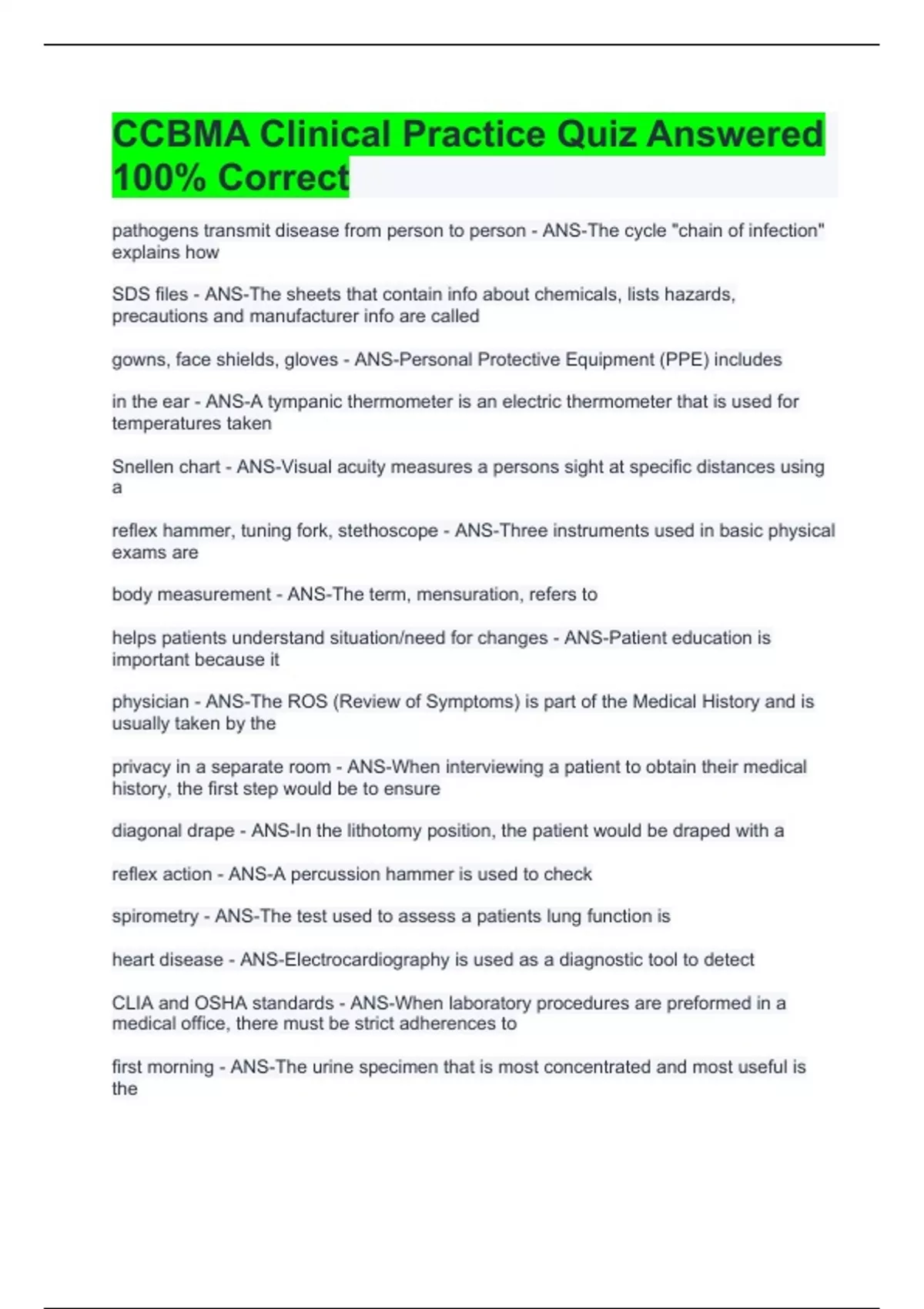 CCBMA Clinical Practice Quiz Answered 100% Correct