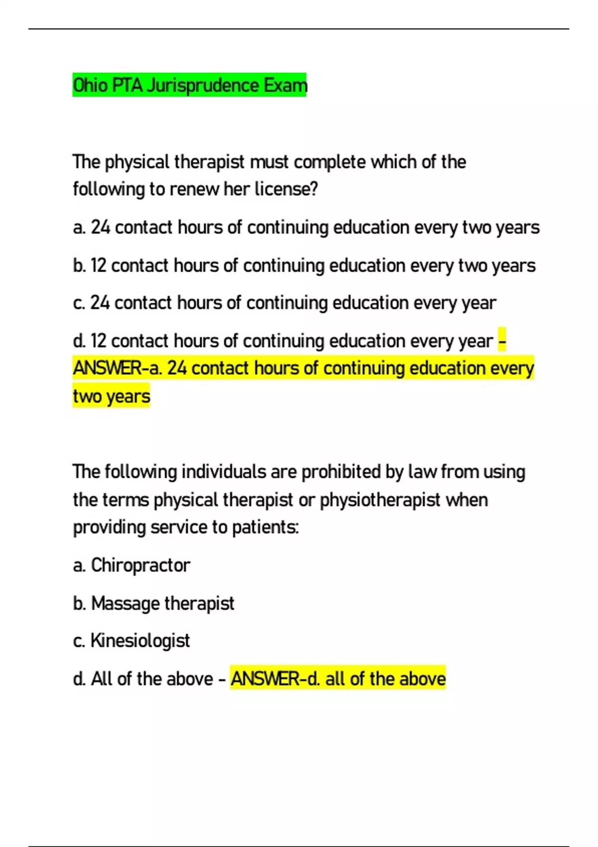 Ohio PTA Jurisprudence Exam. LATEST UPDATED VERSION 2025