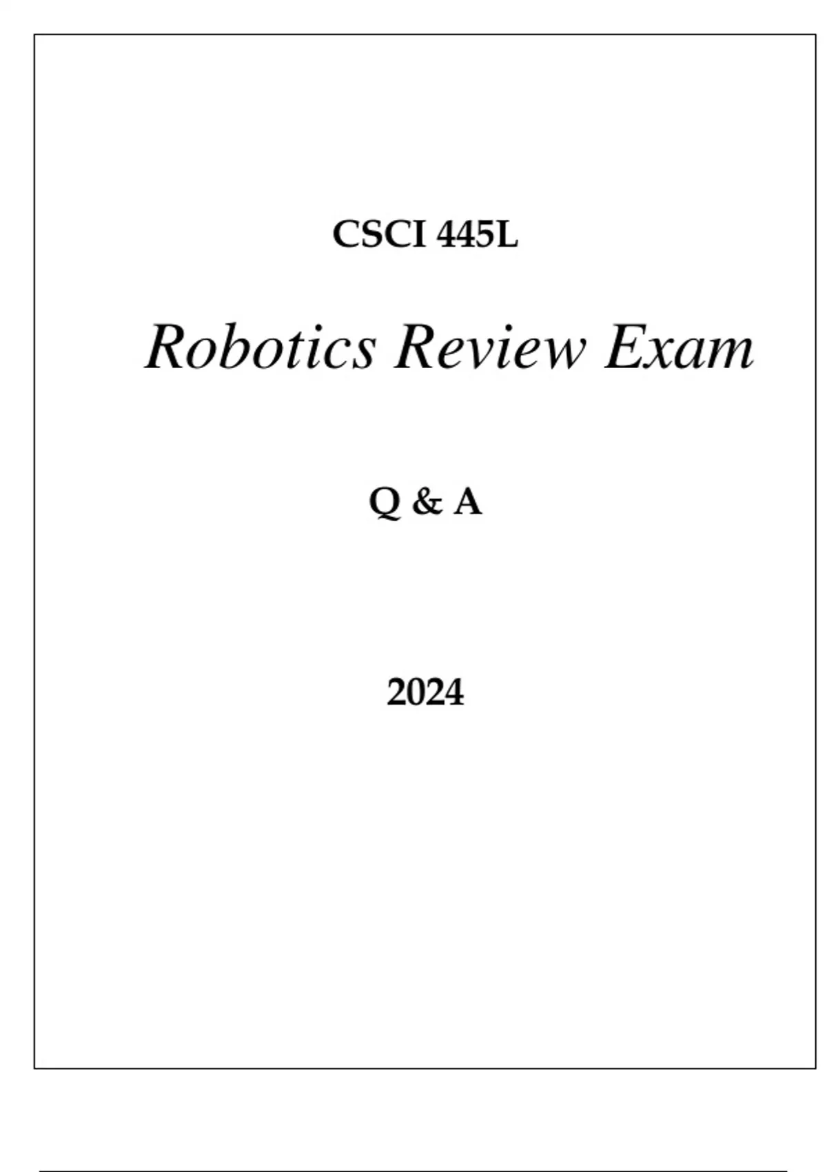 CSCI 445L ROBOTICS REVIEW EXAM Q & A 2024 USCCSCI 445L ROBOTICS REVIEW EXAM Q & A 2024 USCCSCI 445L ROBOTICS REVIEW EXAM Q & A 2024 USC