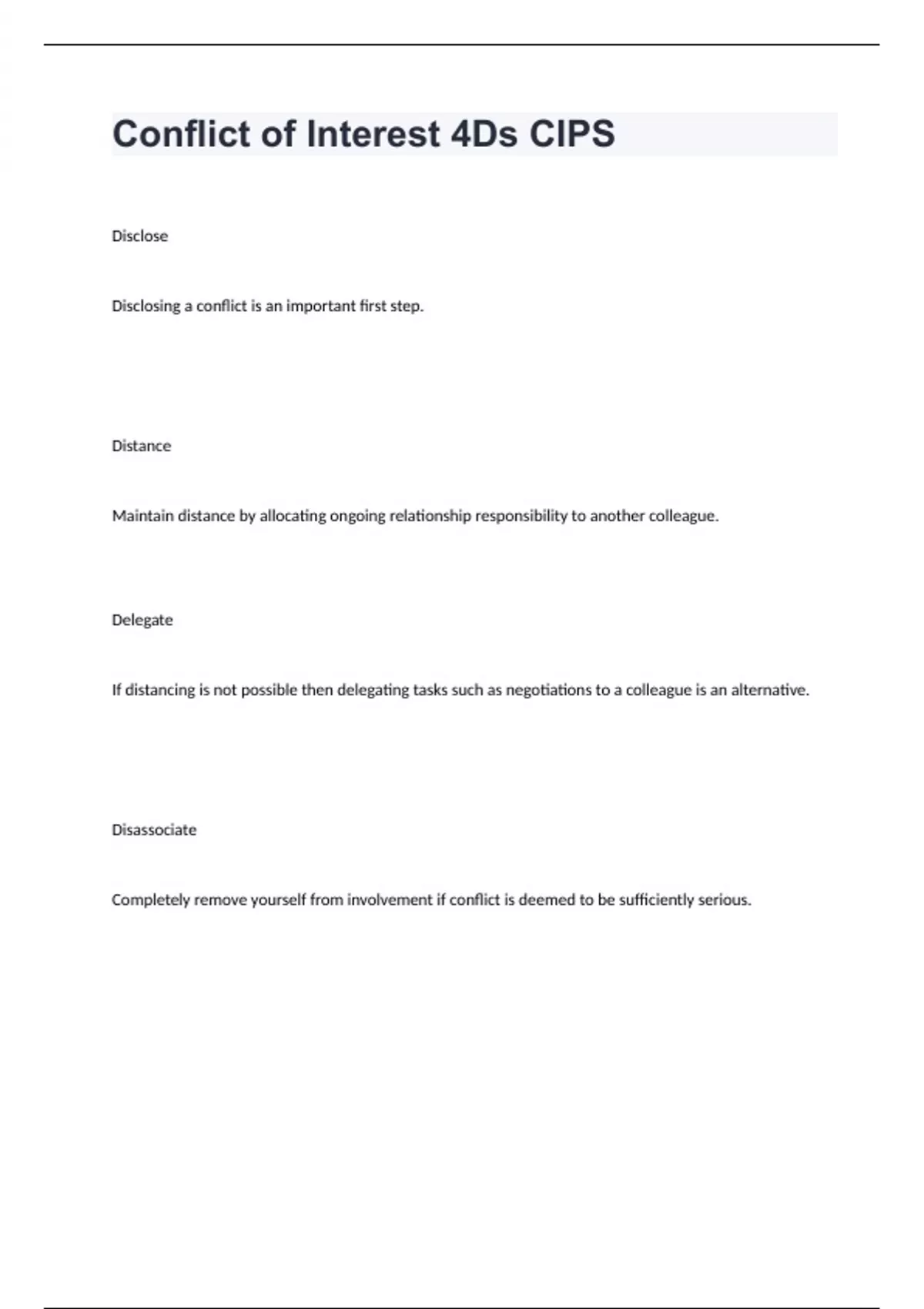 Conflict of Interest 4Ds CIPS fully solved 2024/2025