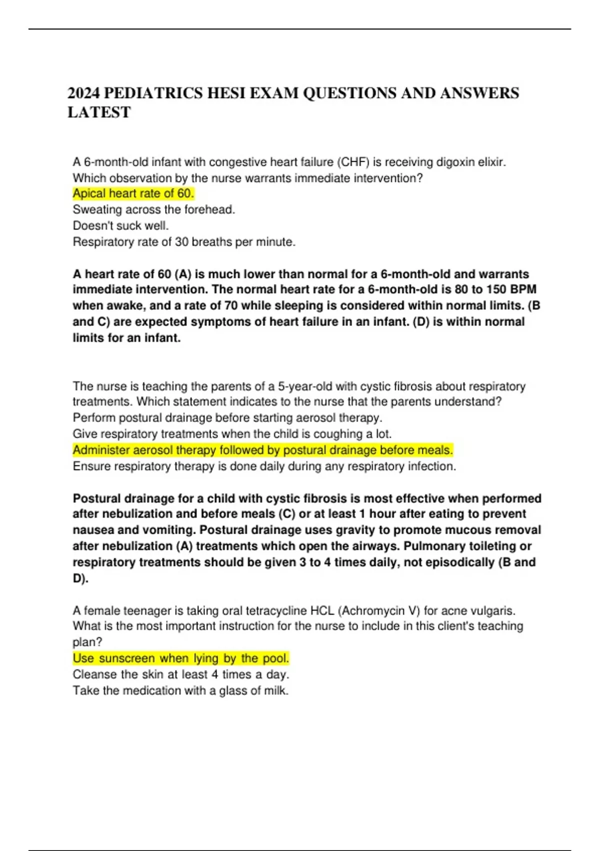 2024 PEDIATRICS HESI EXAM QUESTIONS AND ANSWERS LATEST