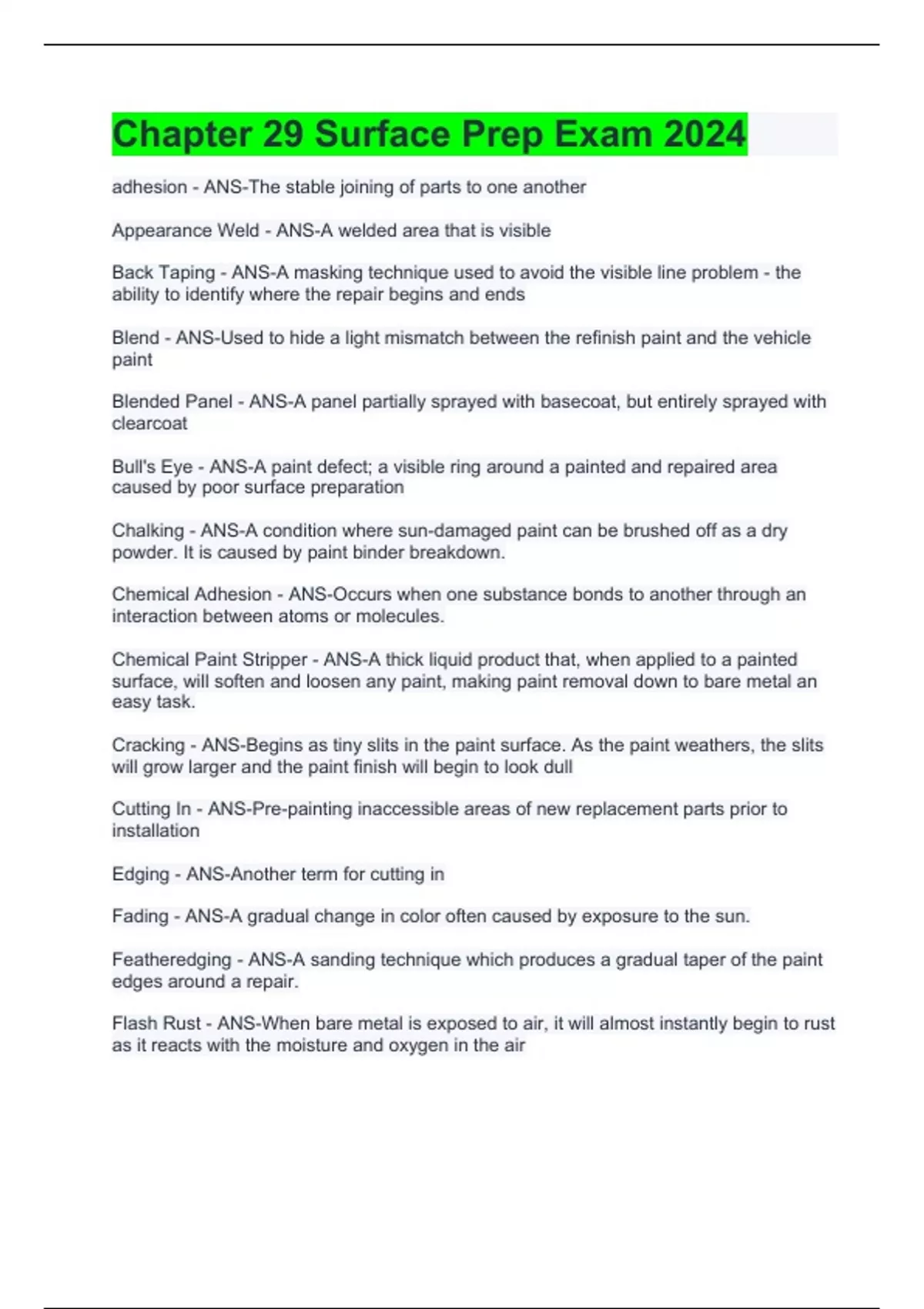chapter 29 surface prep exam