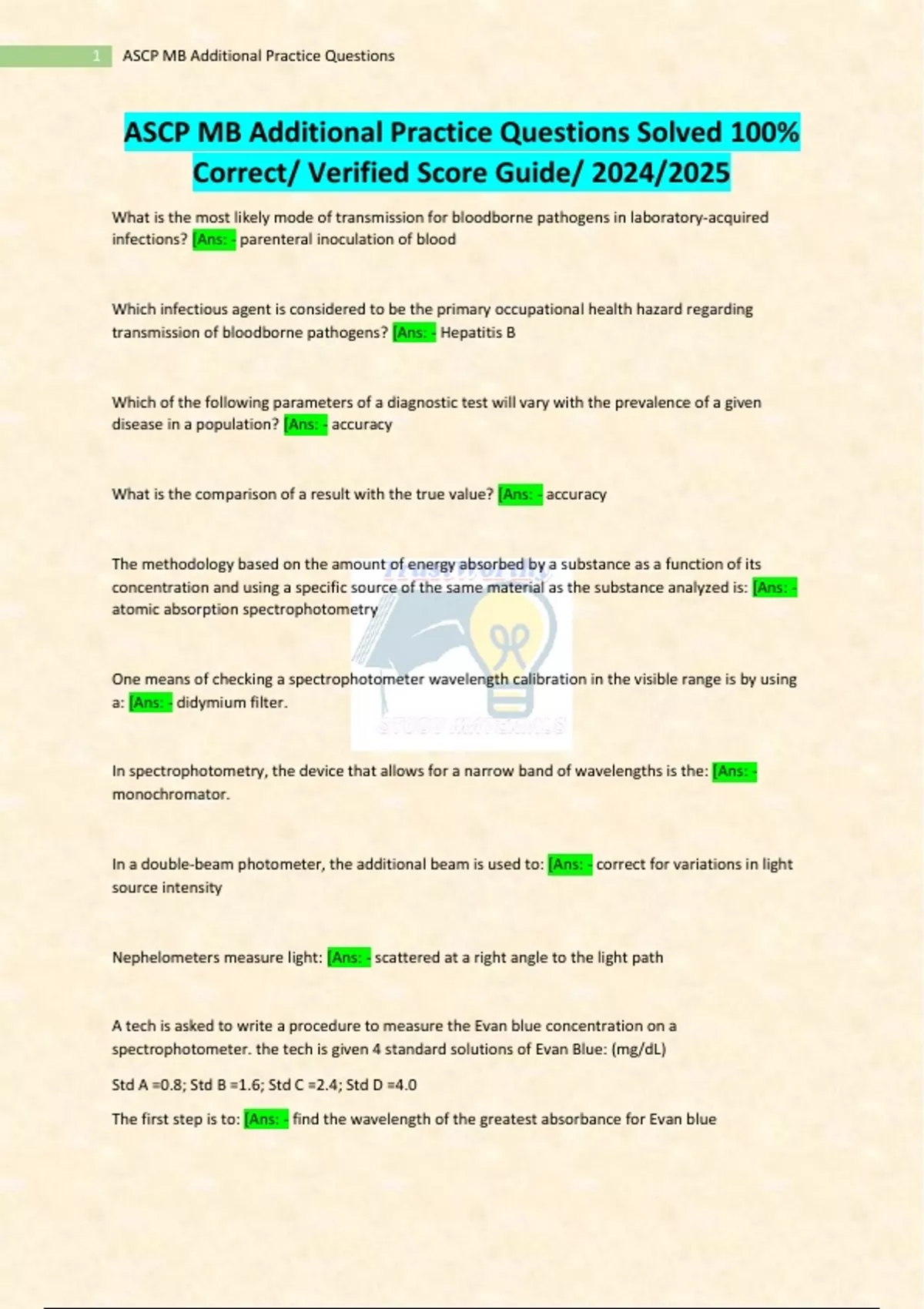 ASCP MB Additional Practice Questions Solved 100% Correct/ Verified Score Guide/ 2024/2025,ASCP MB Additional Practice Questions Solved 100% Correct/ Verified Score Guide/ 2024/2025,ASCP MB Additional Practice Questions Solved 100% Correct/ Verified Score Guide/ 2024/2025
