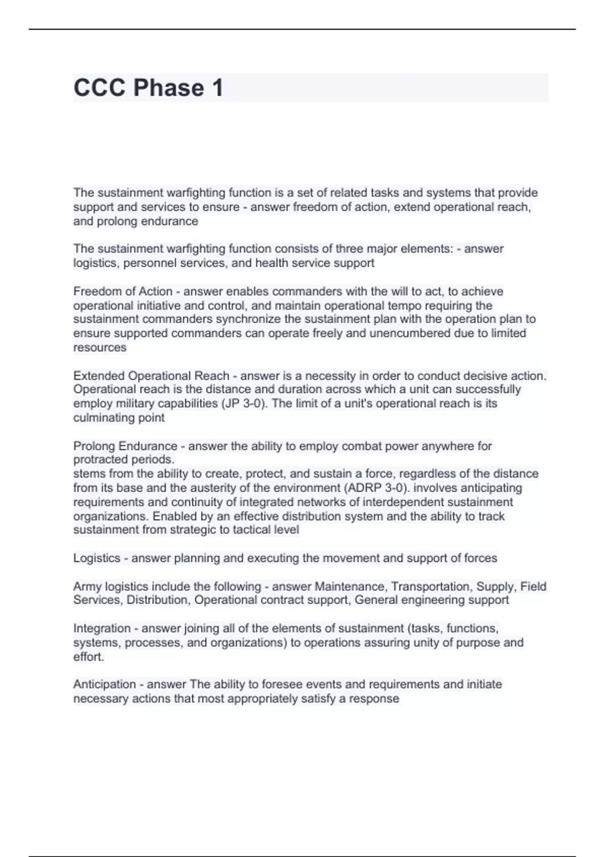 CCC Phase 1 Questions and Answers Fully solved