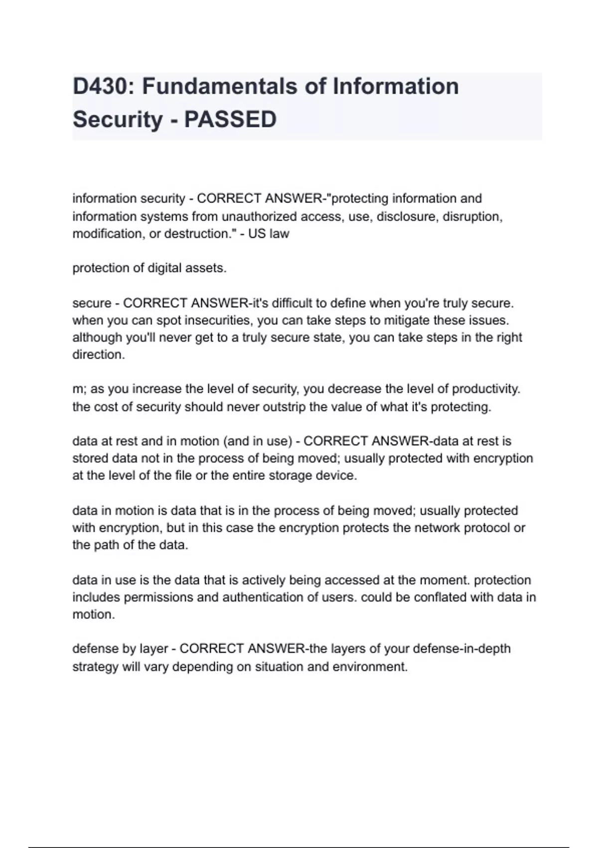 - D430: Fundamentals of Information Security - PASSE