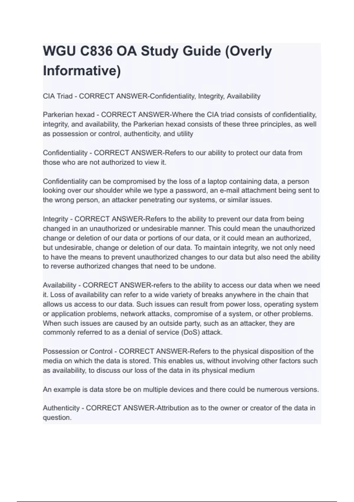 WGU C836 OA Study Guide (Overly Informative) Questions and Correct Answers Rated A+ Verified 100% complete solution