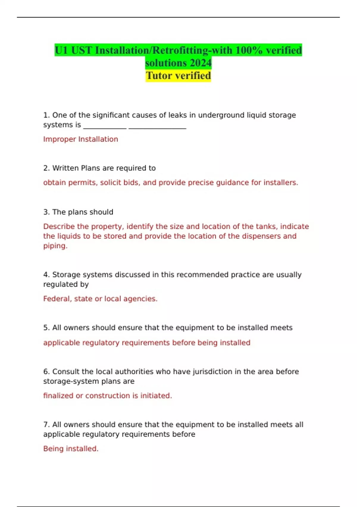 U1 UST Installation/Retrofitting-with 100% verified solutions 2024