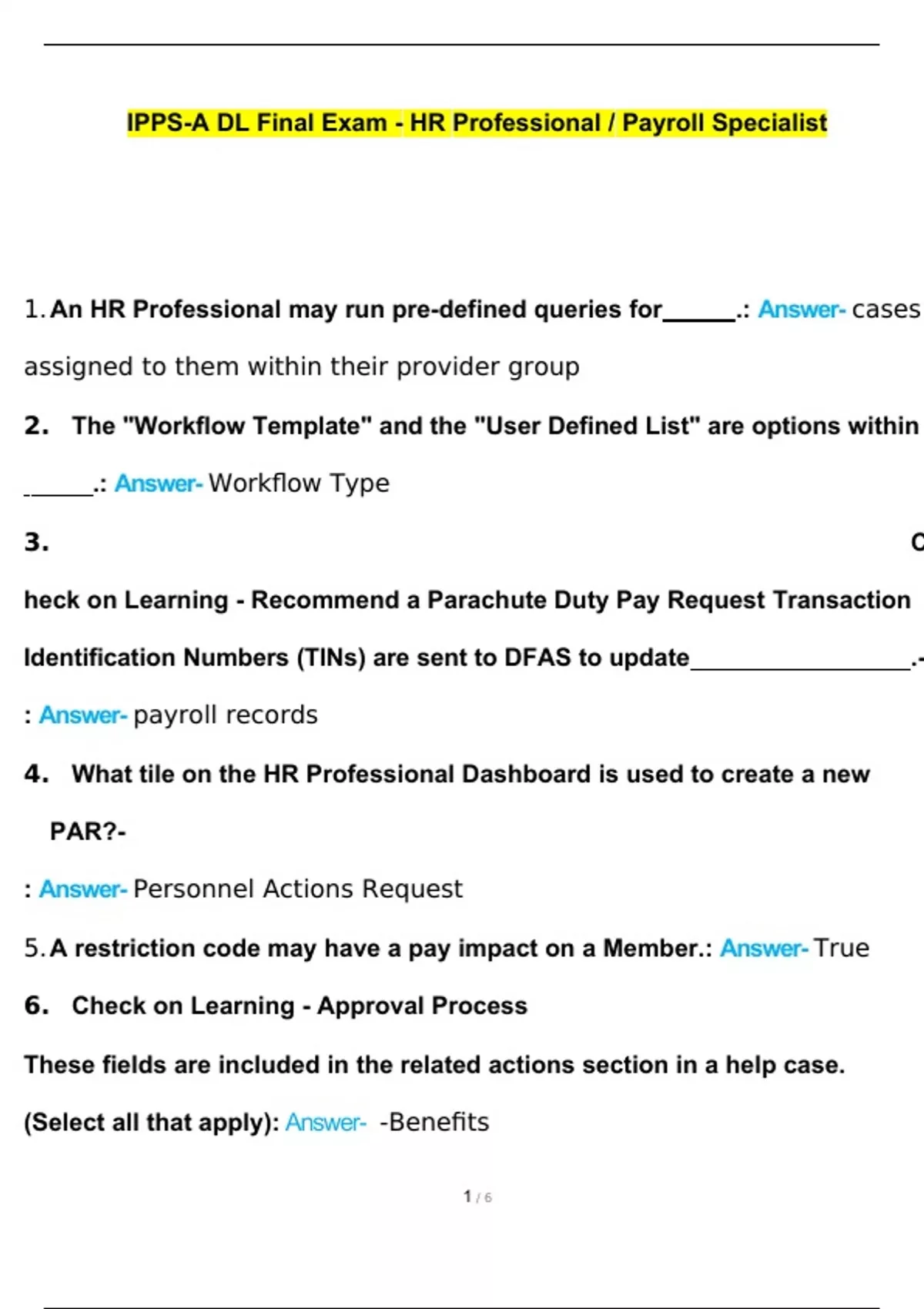 IPPS-A DL Final Exam HR Professional/Payroll Specialist