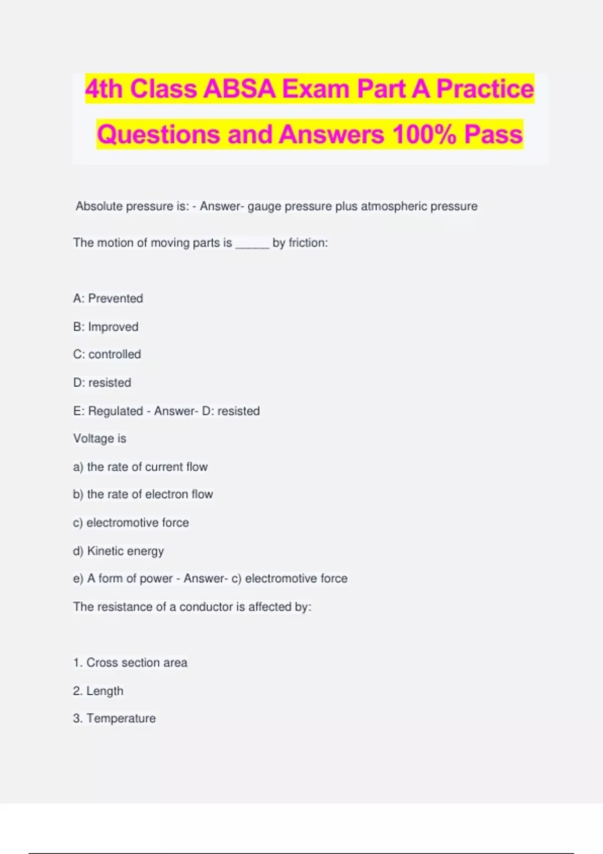 4th Class ABSA Exam Part A Practice Questions and Answers 100% Pass