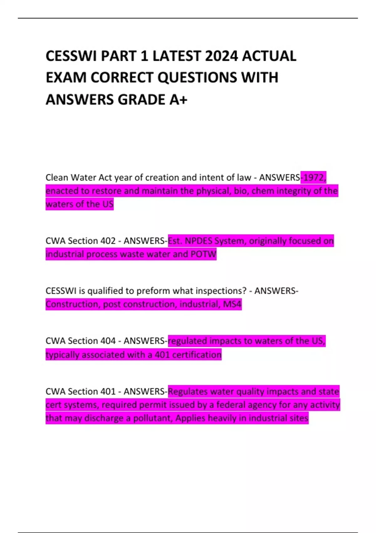 CESSWI PART 1 LATEST 2024 ACTUAL EXAM CORRECT QUESTIONS WITH ANSWERS GRADE A+