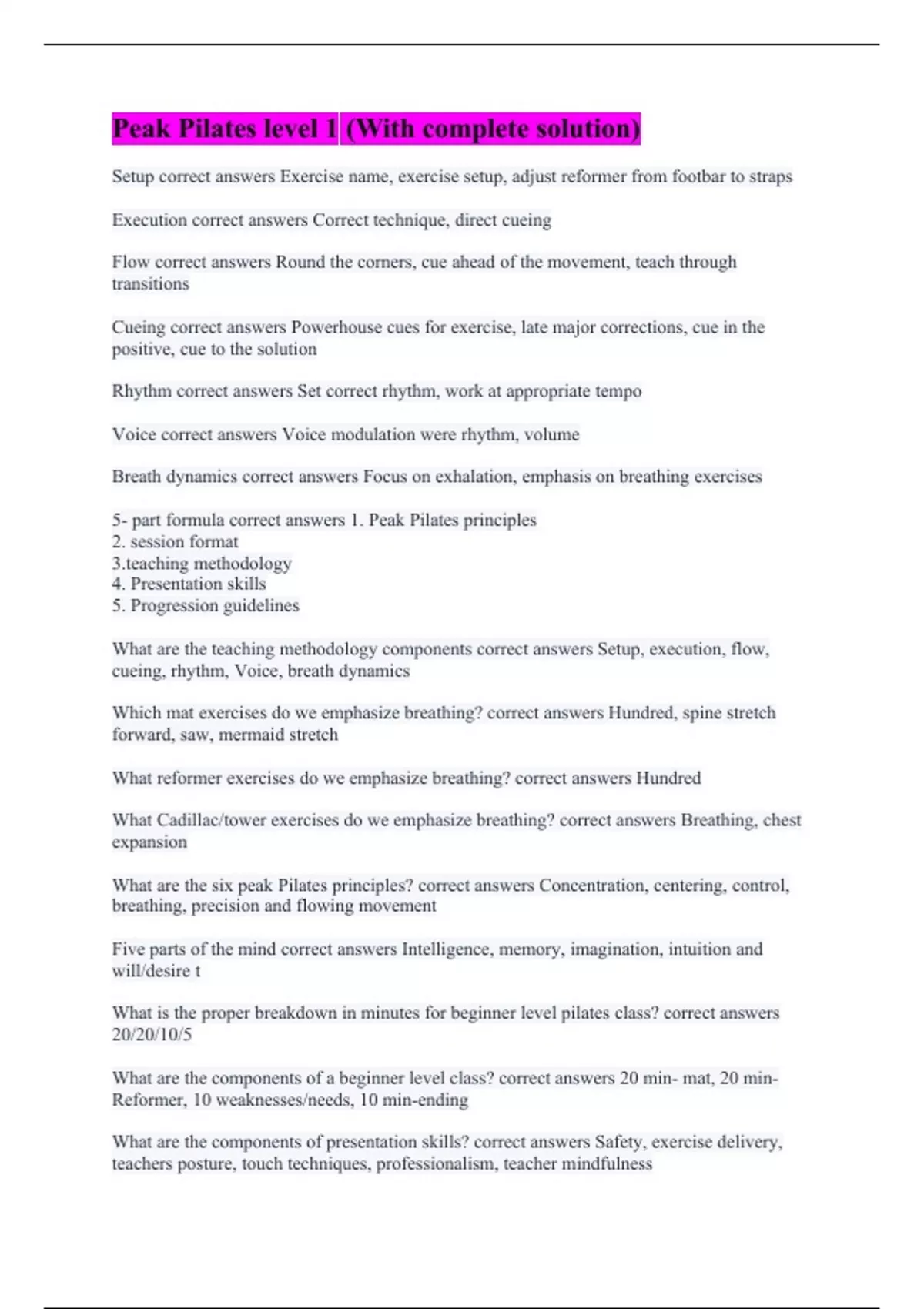 Peak Pilates level 1 (With complete solution)