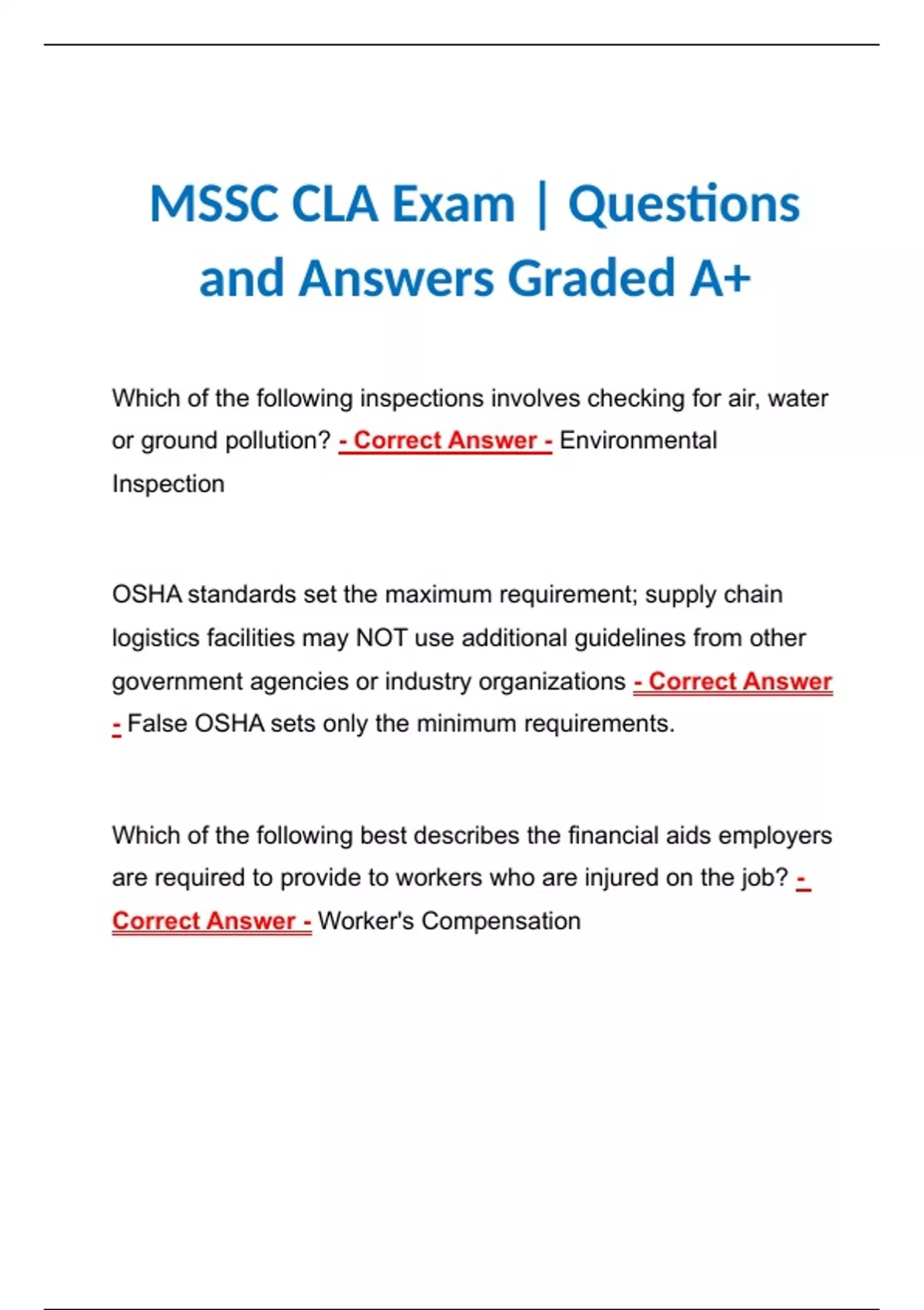 MSSC CLA Exam | Practice Questions and Verified Answers Graded A+ MSSC CLA Exam | Practice Questions and Verified Answers Graded A+ MSSC CLA Exam | Practice Questions and Verified Answers Graded A+