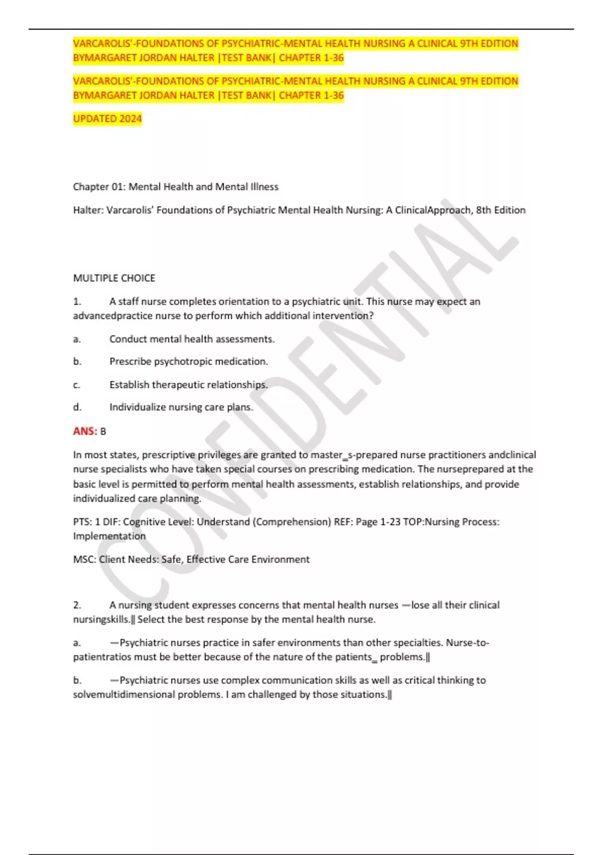 VARCAROLIS'-FOUNDATIONS OF PSYCHIATRIC-MENTAL HEALTH NURSING A CLINICAL 9TH EDITION BYMARGARET JORDAN HALTER |TEST BANK| CHAPTER 1-36 UPDATED 2024VARCAROLIS'-FOUNDATIONS OF PSYCHIATRIC-MENTAL HEALTH NURSING A CLINICAL 9TH EDITION BYMARGARET JORDAN HALTER |TEST BANK| CHAPTER 1-36 UPDATED 2024VARCAROLIS'-FOUNDATIONS OF PSYCHIATRIC-MENTAL HEALTH NURSING A CLINICAL 9TH EDITION BYMARGARET JORDAN HALTER |TEST BANK| CHAPTER 1-36 UPDATED 2024
