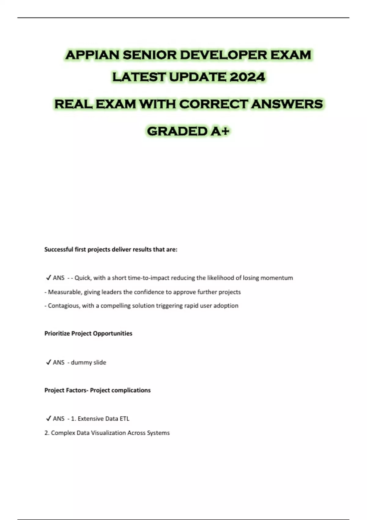 APPIAN SENIOR DEVELOPER EXAM LATEST UPDATE 2024 REAL EXAM WITH CORRECT ANSWERS GRADED A+